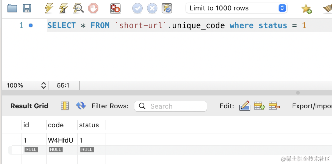 }这里就是先从 unique-code 表里取一个压缩码来用,如果没有可用压缩码,那就生成一个。