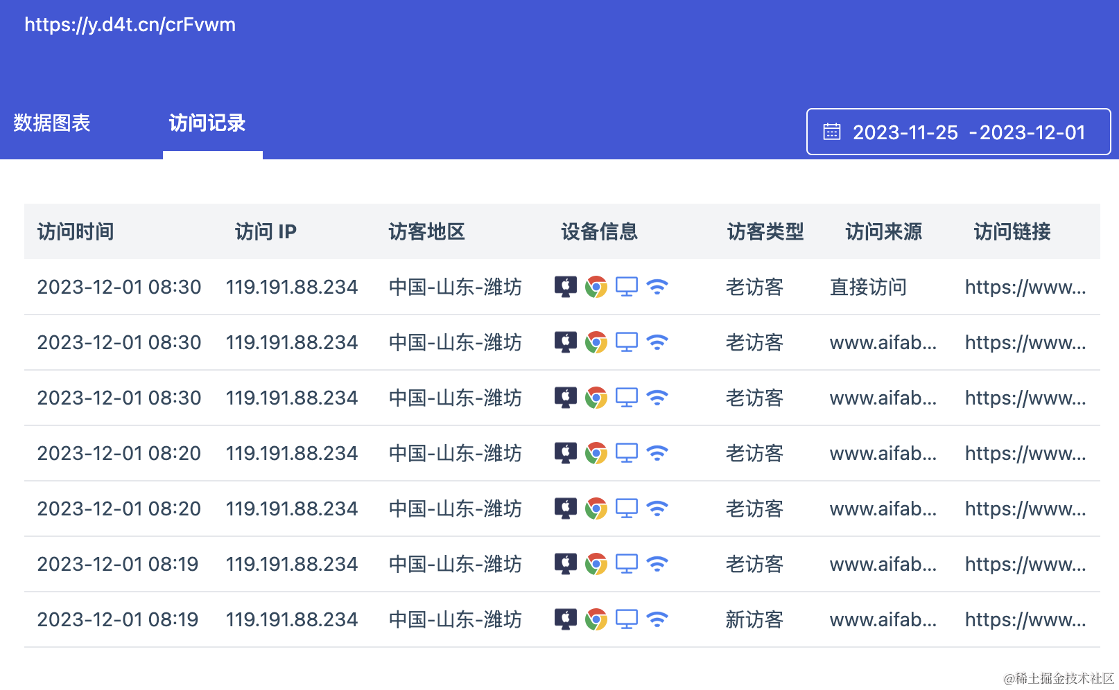 比如刚才我们用的短链服务,就会记录这个链接的访问记录: