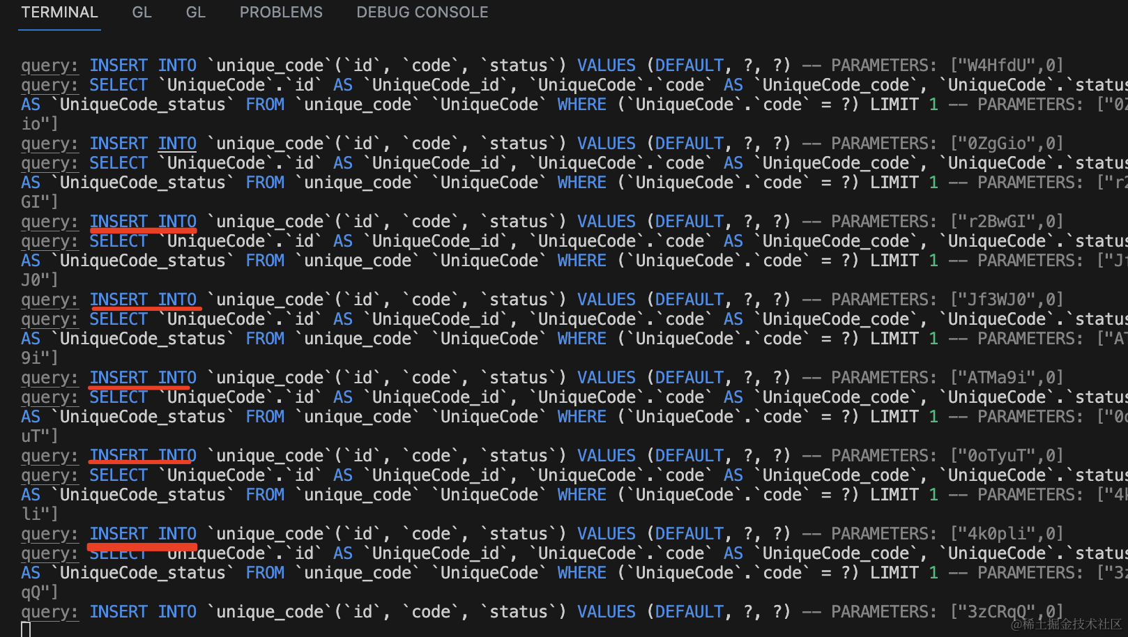 @Cron(CronExpression.EVERY_5_SECONDS)然后就可以看到一直在打印 insert 语句:
