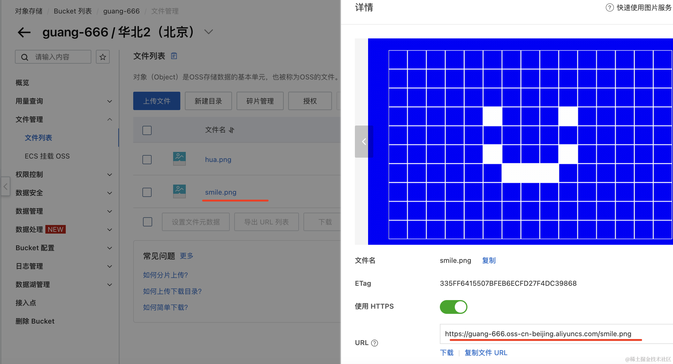 上传成功之后就可以通过 OSS 服务访问这个图片了: