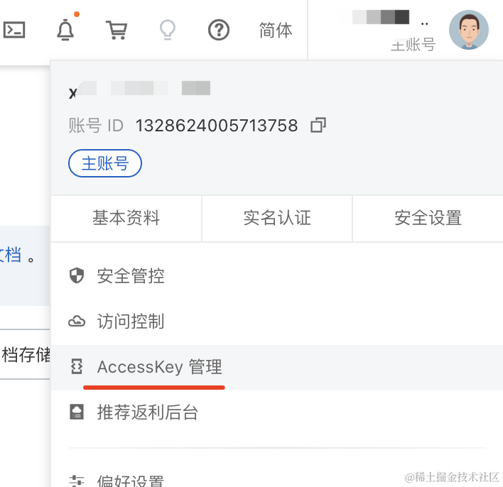 acessKey 是在这里看: