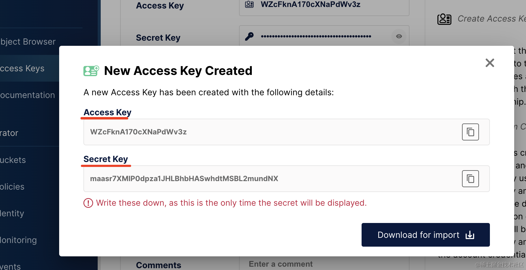 put();创建用到的 accessKey: