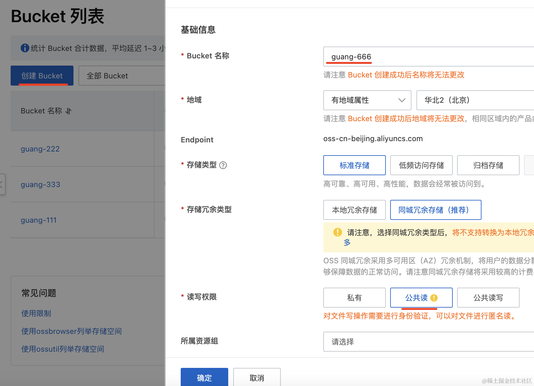 OSS 里的文件是放在一个个 Bucekt(桶)里的: