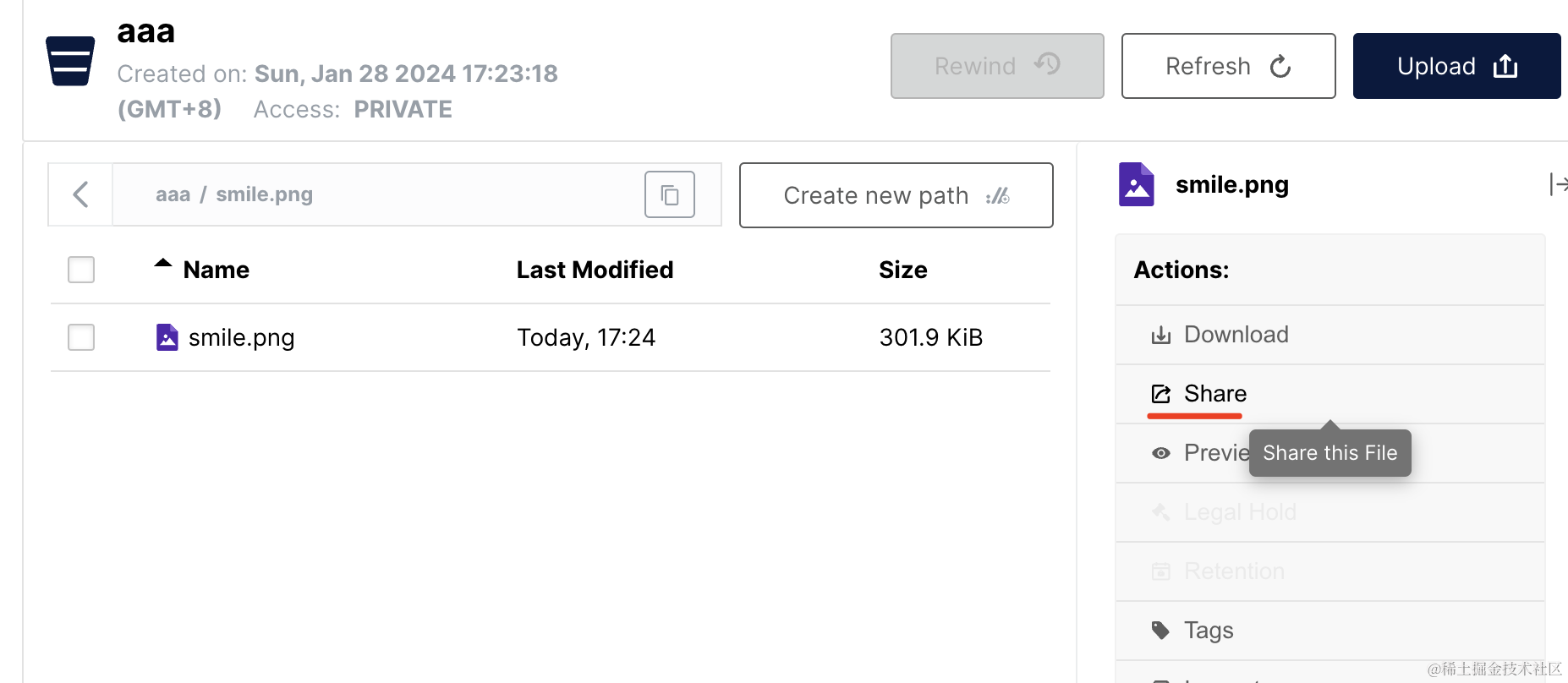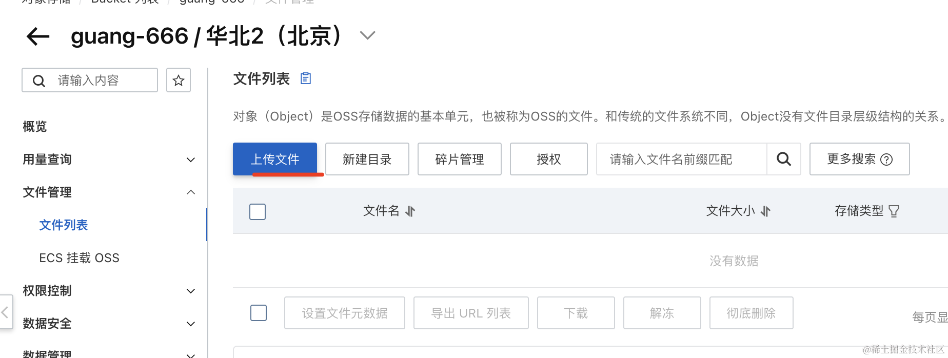 然后在这个 bucket 下上传一个文件:
