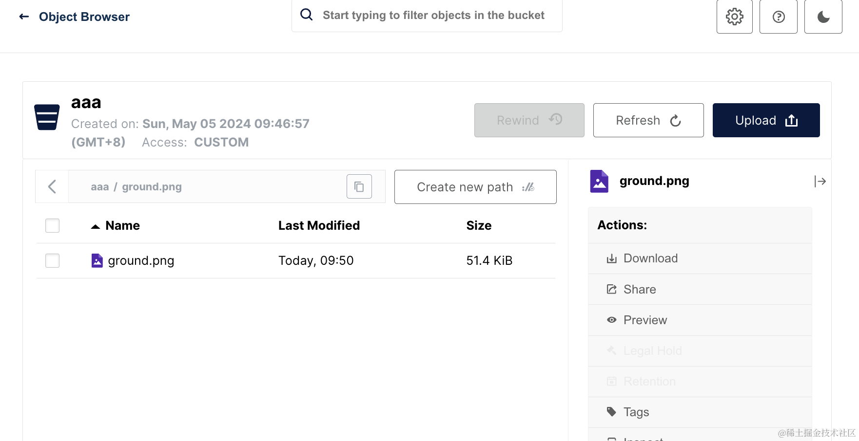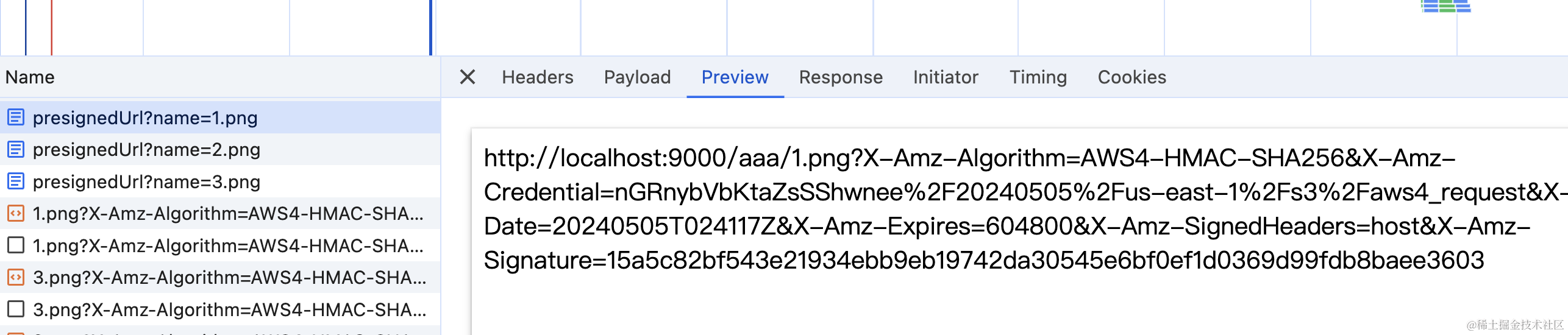 }这里的第一个参数是 bucketName,第二个参数是 objectName,第三个参数是过期时间,我们指定 3600秒,也就是一小时