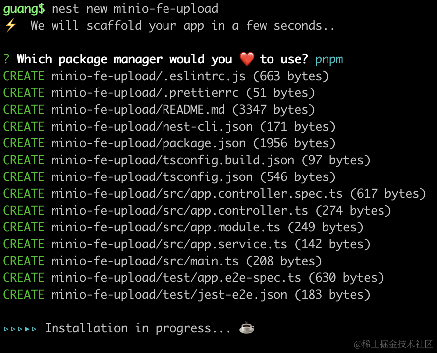 因为需要服务端生成临时凭证,我们创建个 nest 服务: