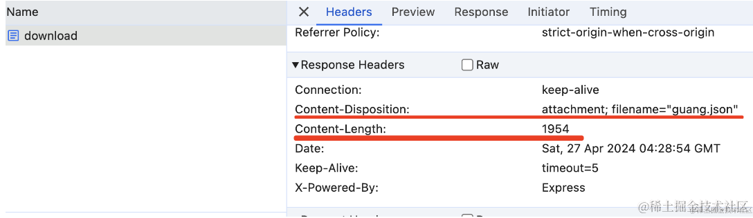 只是这里的 Content-Type 默认是 application/octet-stream 二进制流: