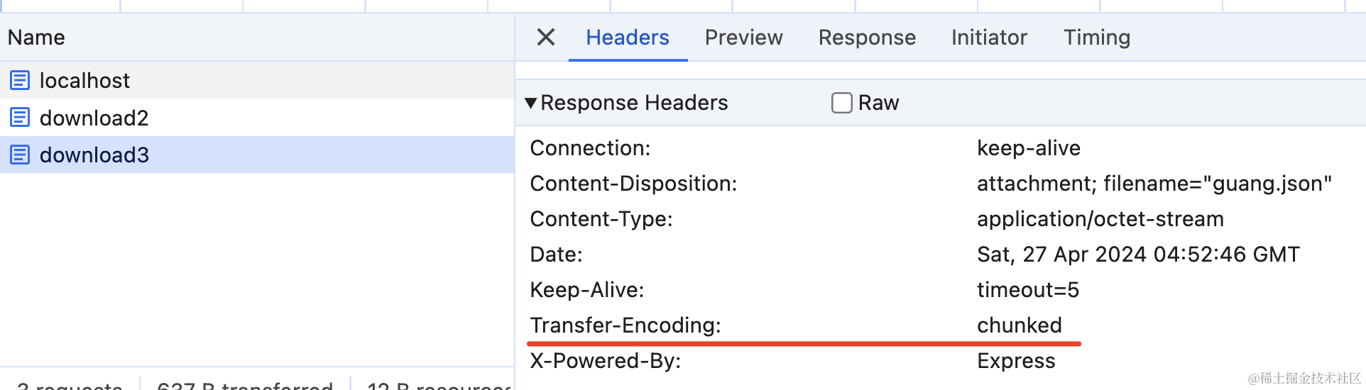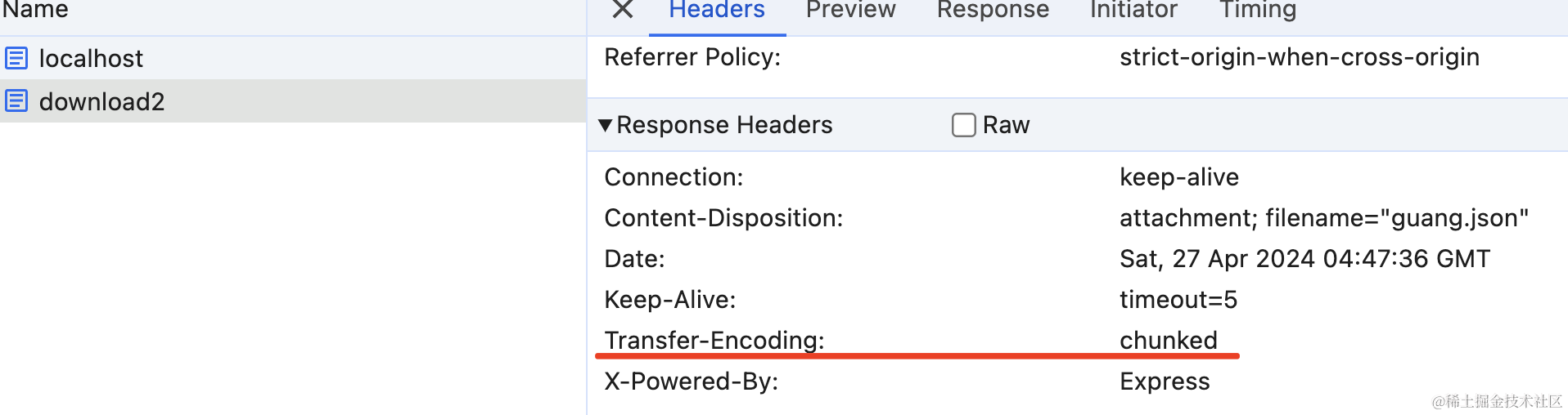 现在就不再返回 Content-Length 了,而是返回了 Transfer-Encoding:chunked: