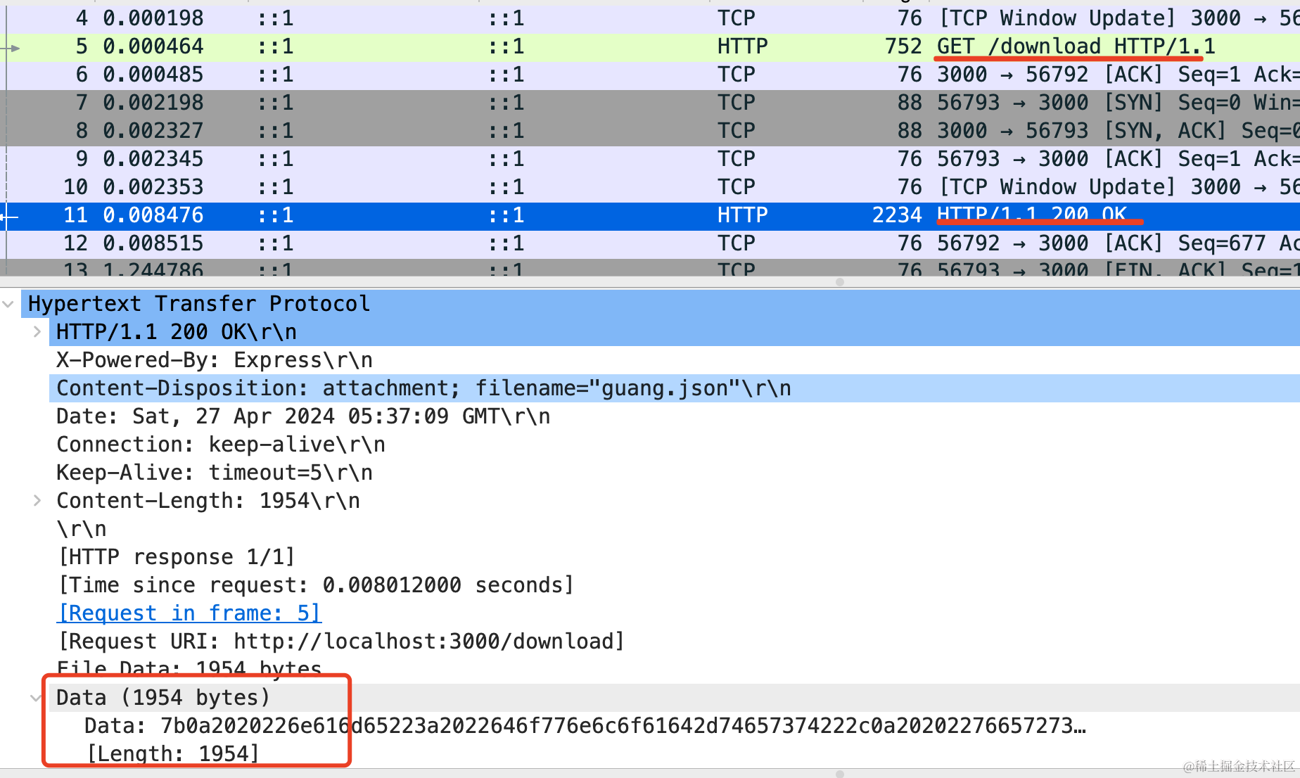 以后面试官再问你大文件下载优化或者问 transfer-encoding:chunked,你就可以大胆的说你用 wireshark 抓包验证过了。