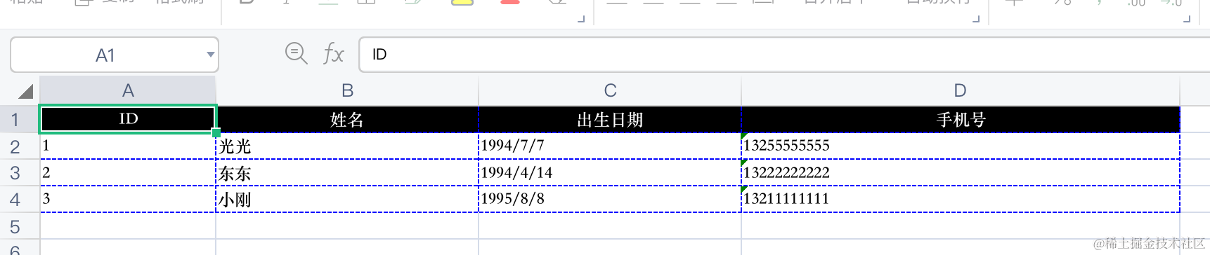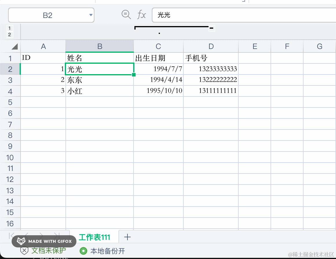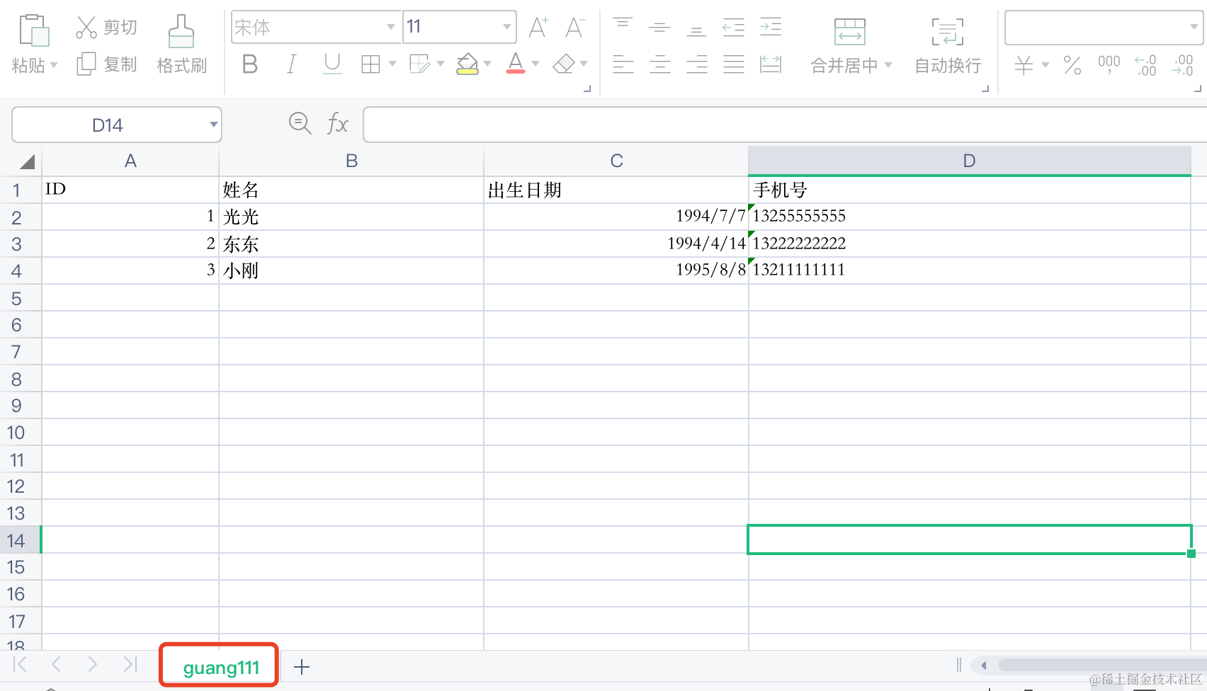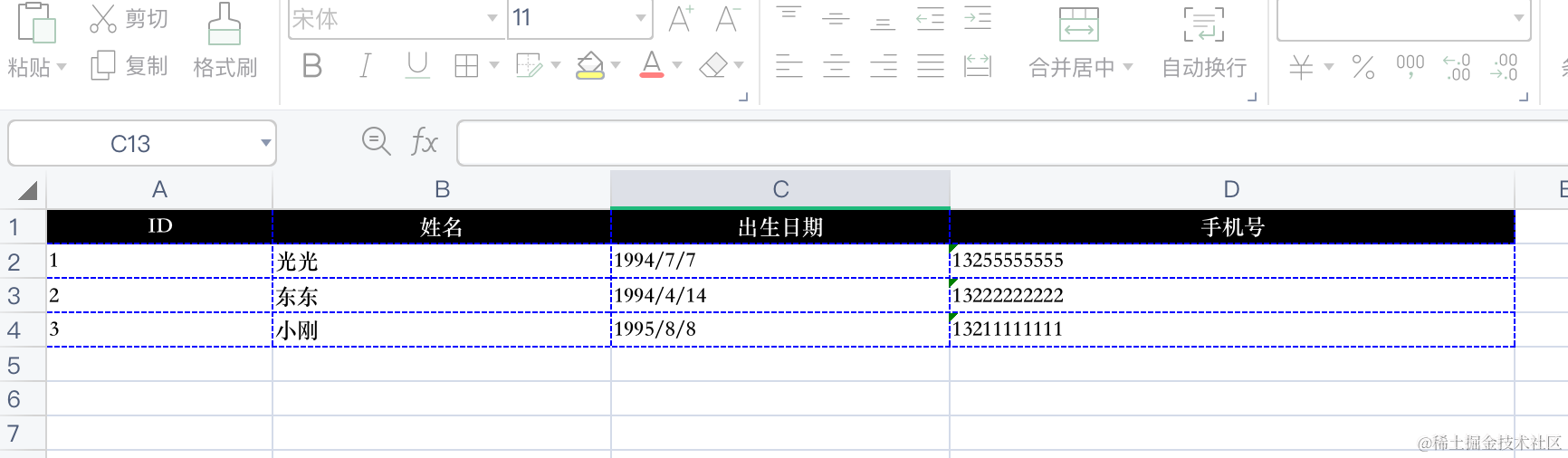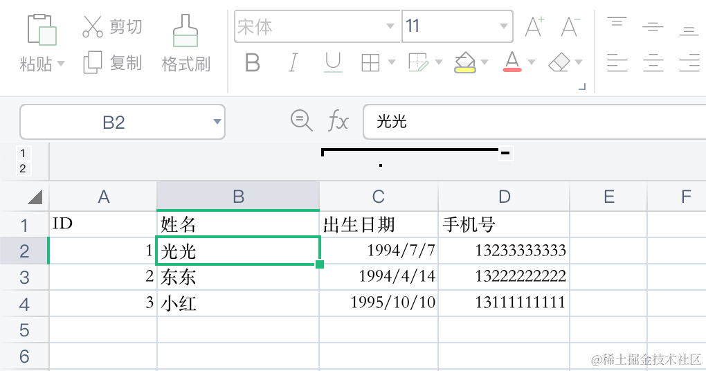 { id: 2, name: '东东', birthday: new Date('1994-04-14'), phone: '13222222222' },
