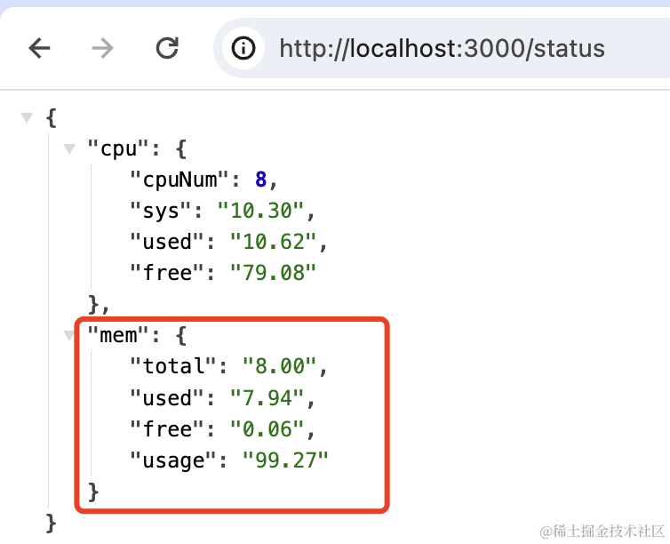 }os.totalmem 是总内存,os.freemem 是空闲内存,那差值就是已使用的内存。