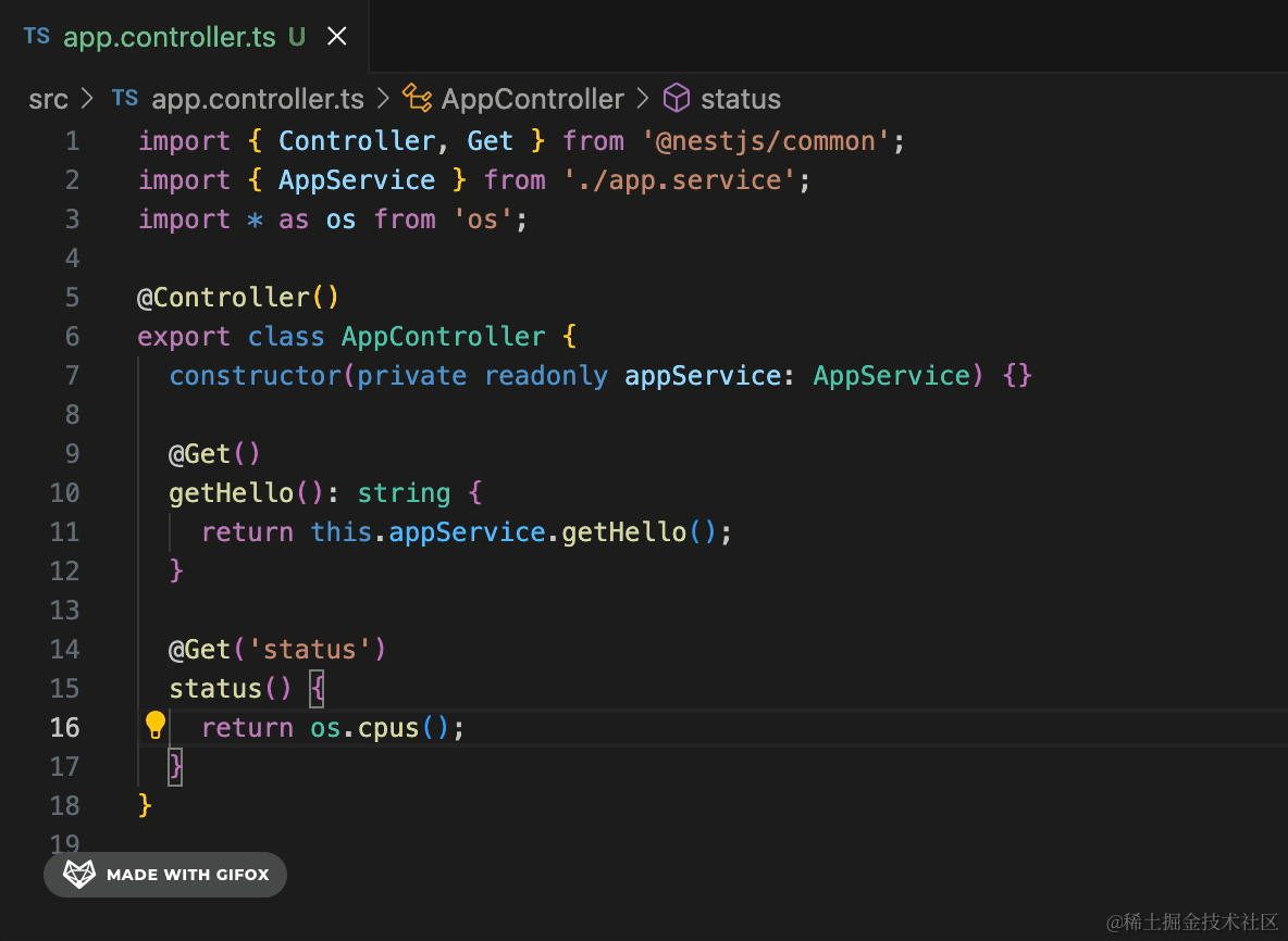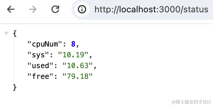 在 AppController 加个接口,用 os.cpus 拿到 cpu 的信息: