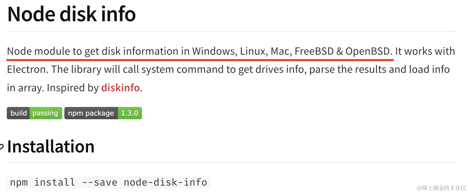 这里用到 node-disk-info 这个包:
