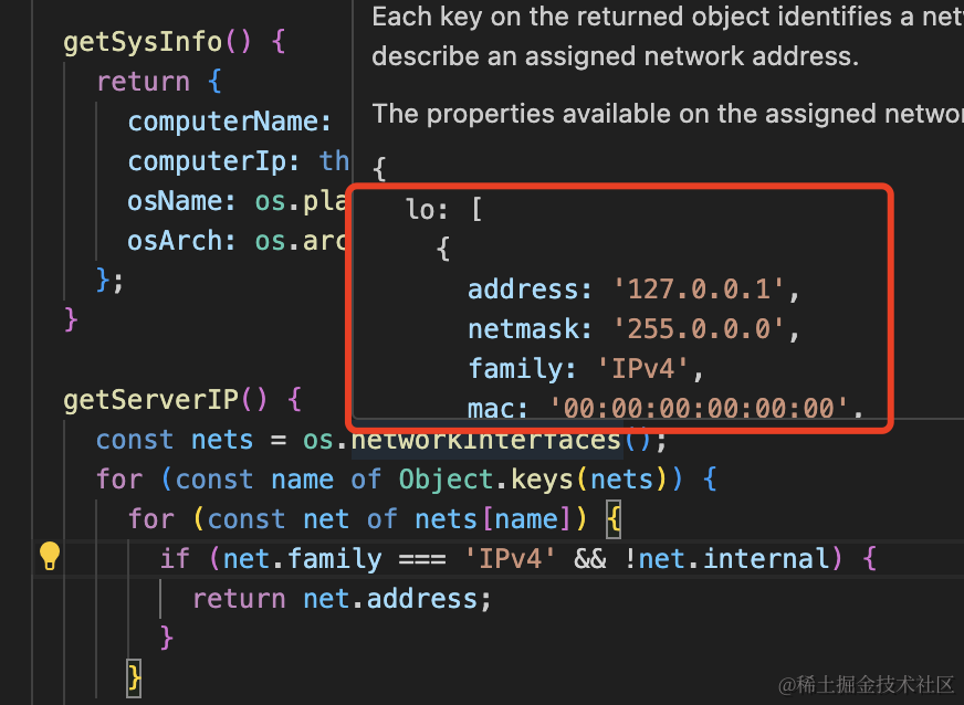 }这里的 os.networkInterfaces 是拿到所有网卡信息: