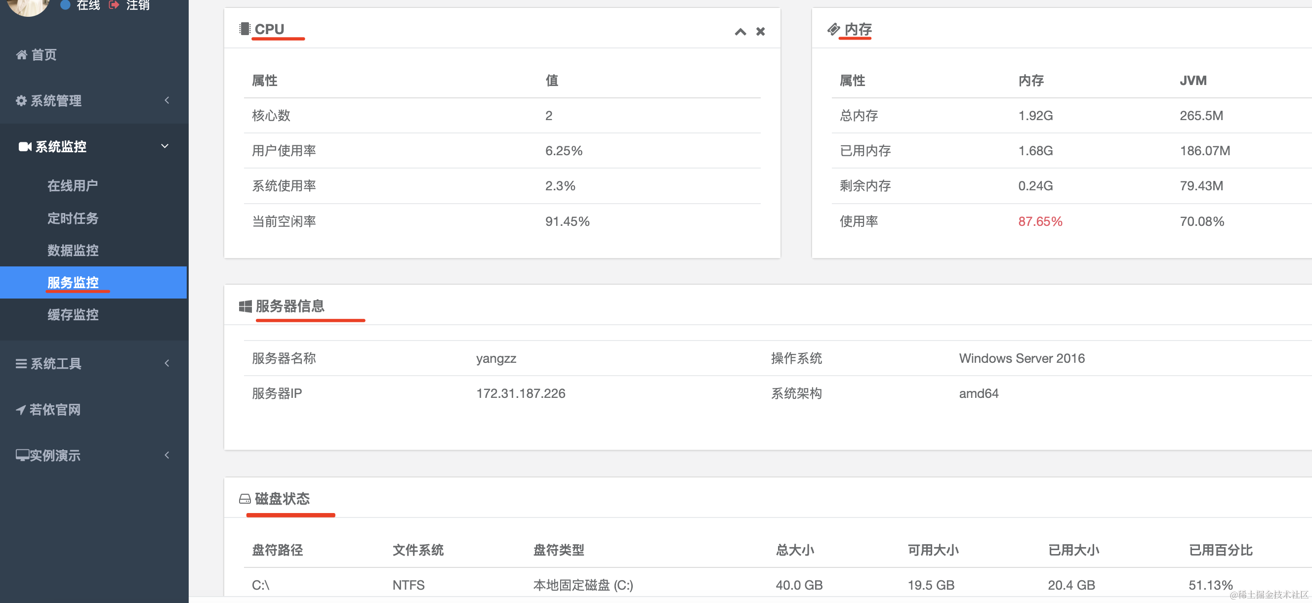 在很多系统中,会有展示服务器信息的页面。