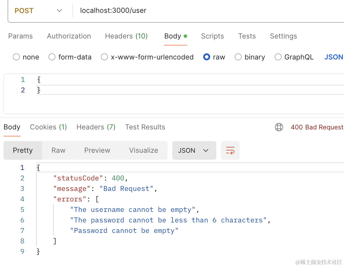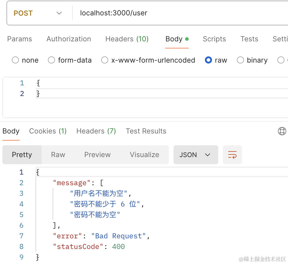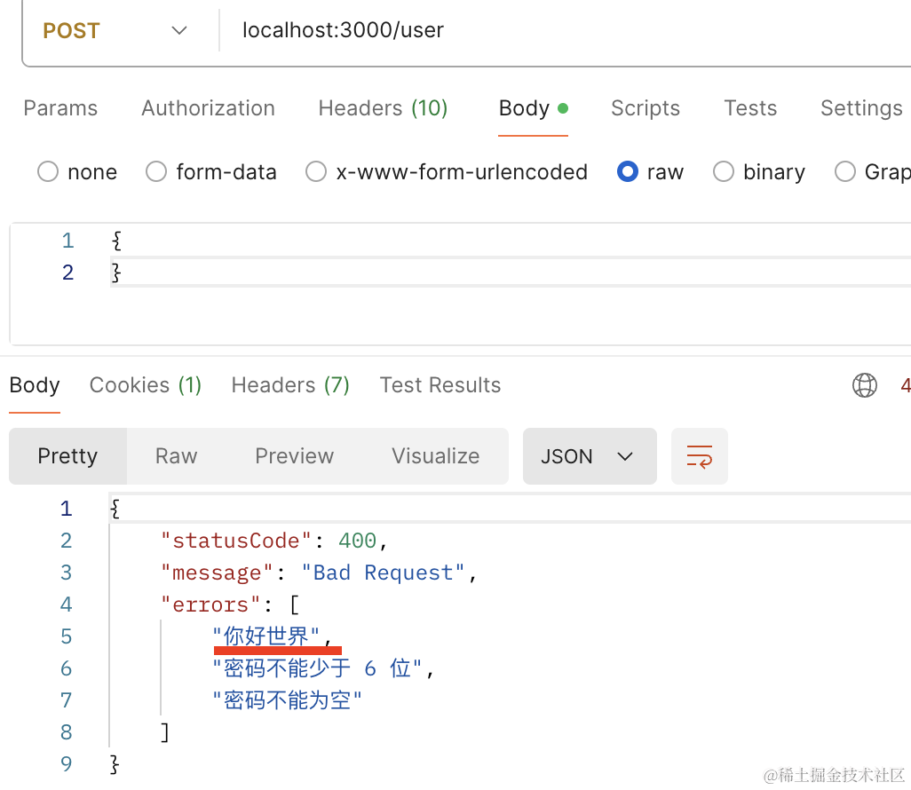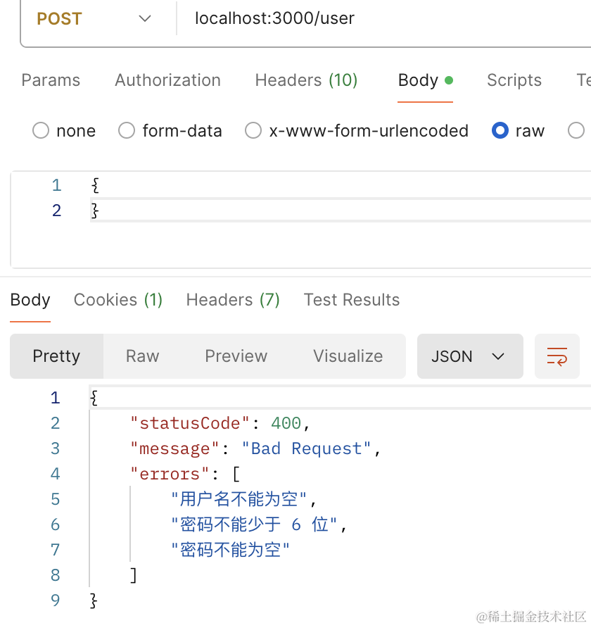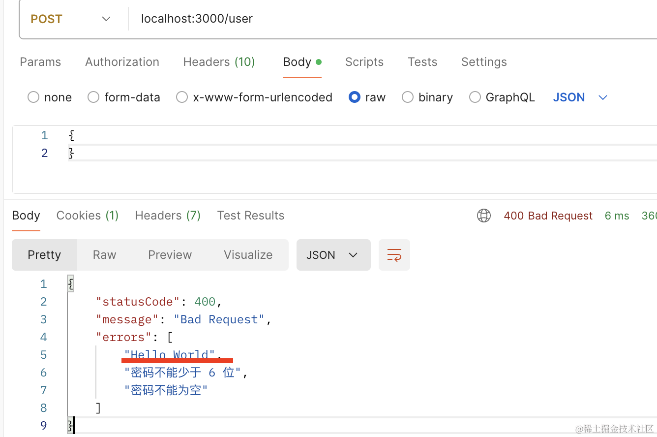 }校验 body 的错误需要全局启用 ValidationPipe: