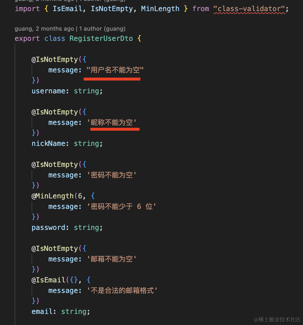 npm install --save class-validator class-transformer改一下 CreateUserDto: