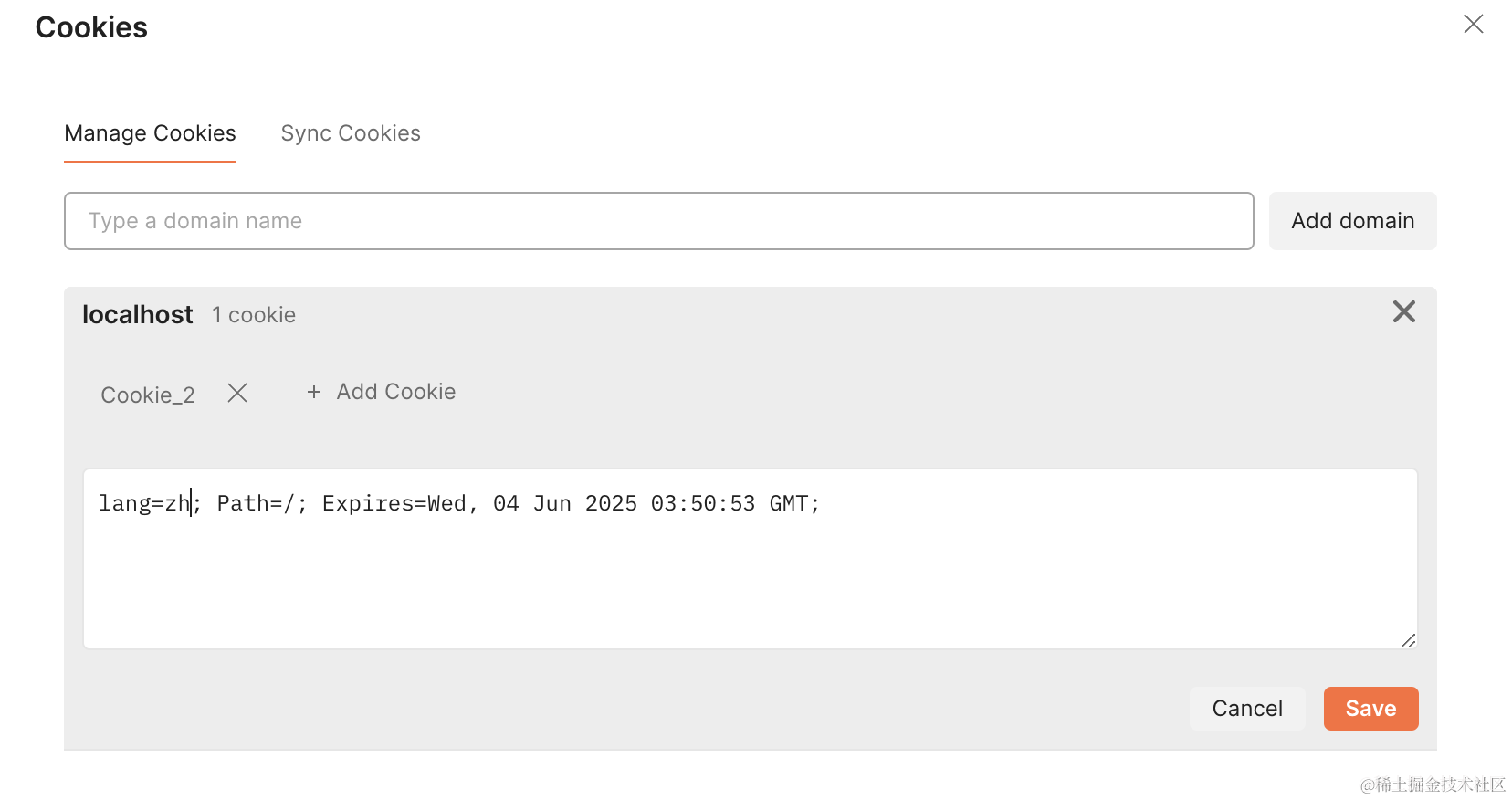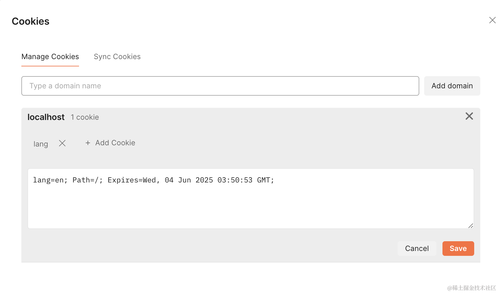 在 postman 里访问,添加一个 cookie: