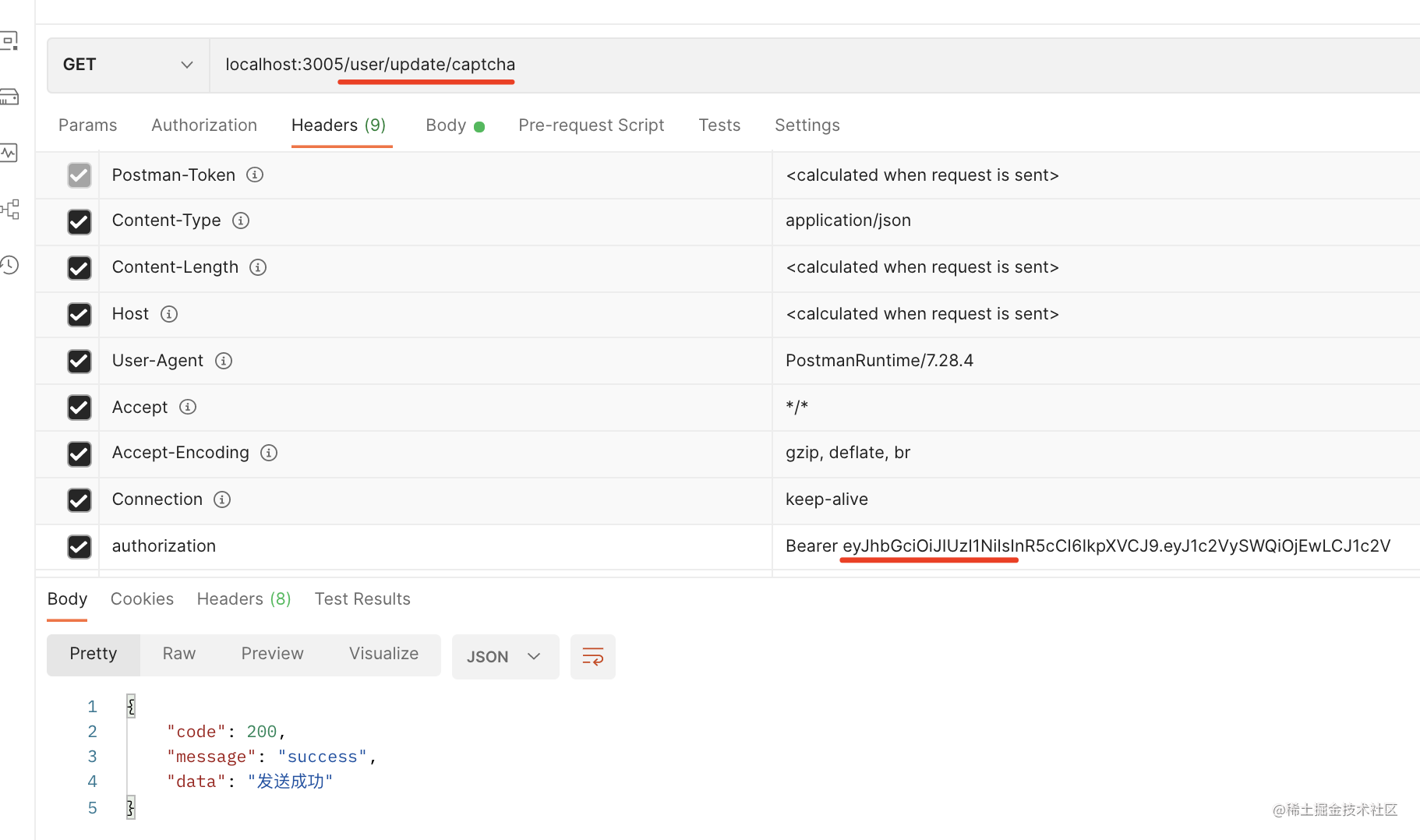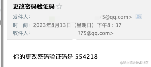提示发送成功,邮箱里也收到了这个验证码: