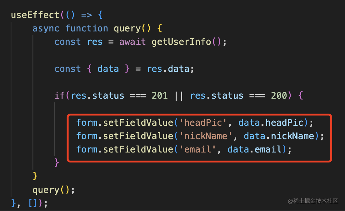 form.setFieldValue('email', data.email);这样,回显的数据就有了: