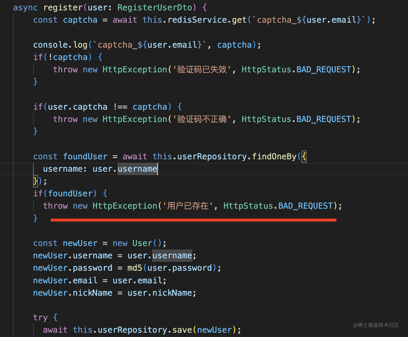 但是邮箱我们并没有添加唯一约束,只有 username 是在注册的时候做了唯一检查: