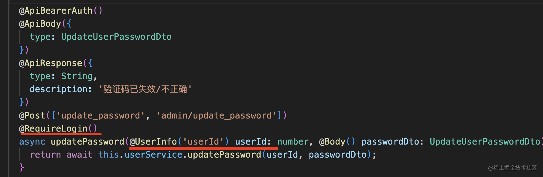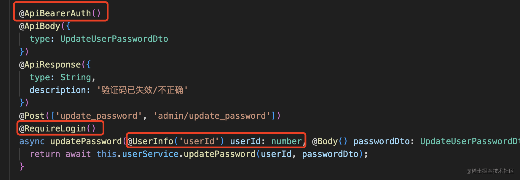 之前写的 update_password 接口需要登录,然后用 @UserInfo 从 reqeust.user 取 userId。