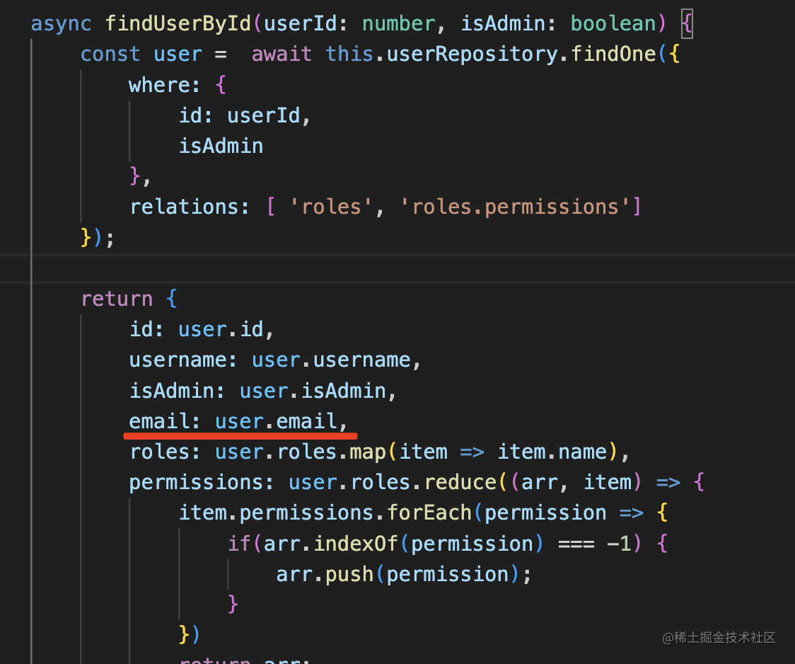 const foundUser = await this.userRepository.findOneBy({