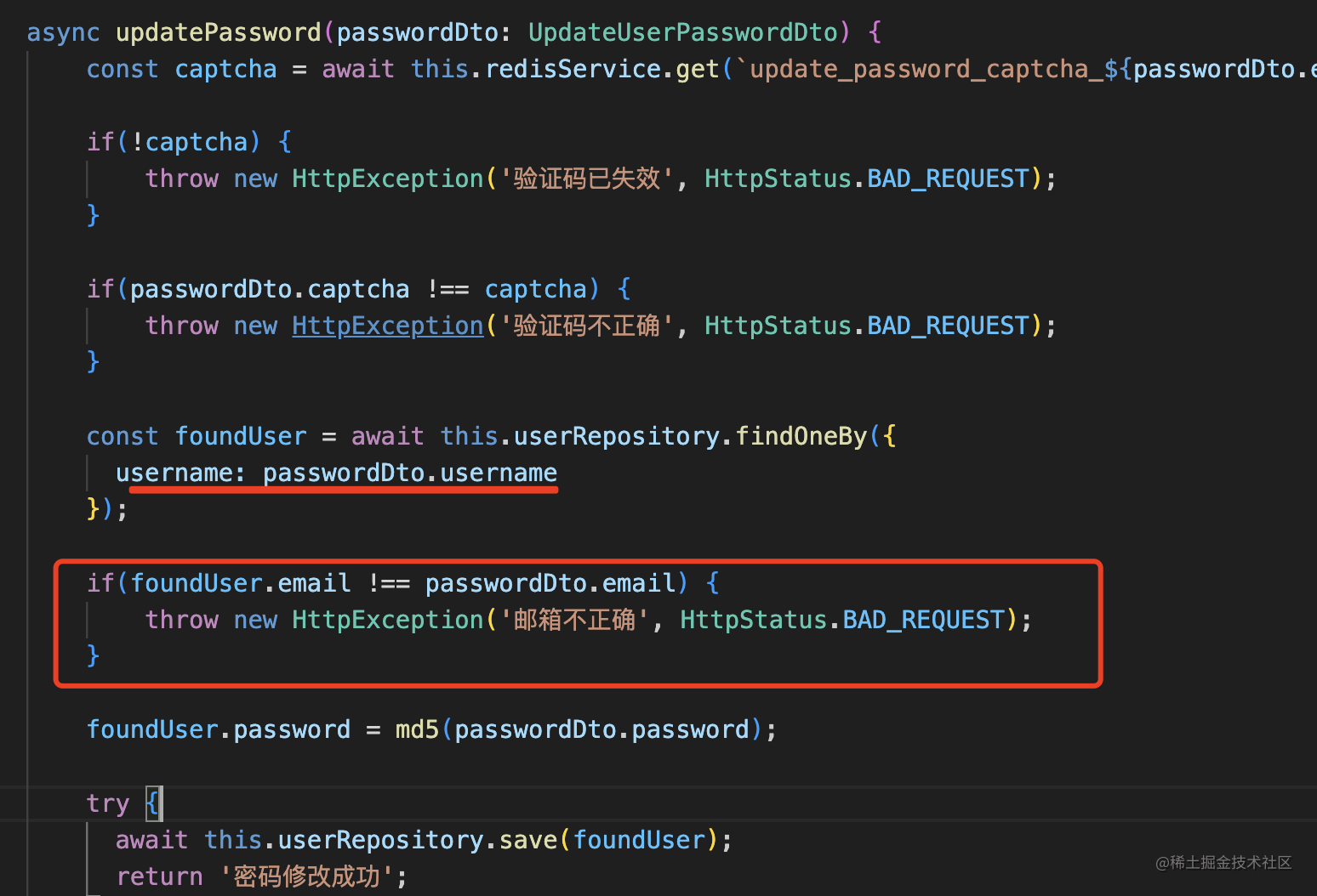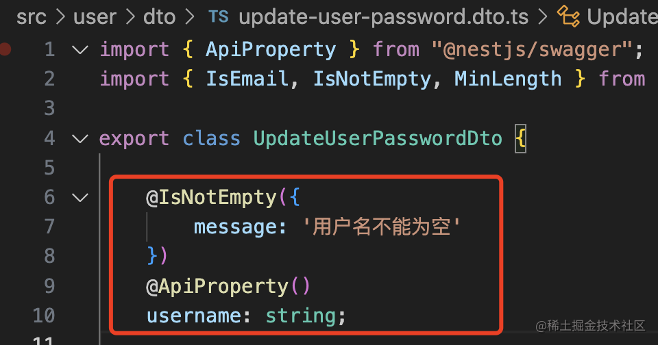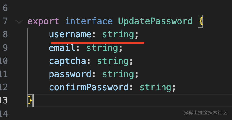 username: string;然后改下 UserService 的 updatePassword 方法: