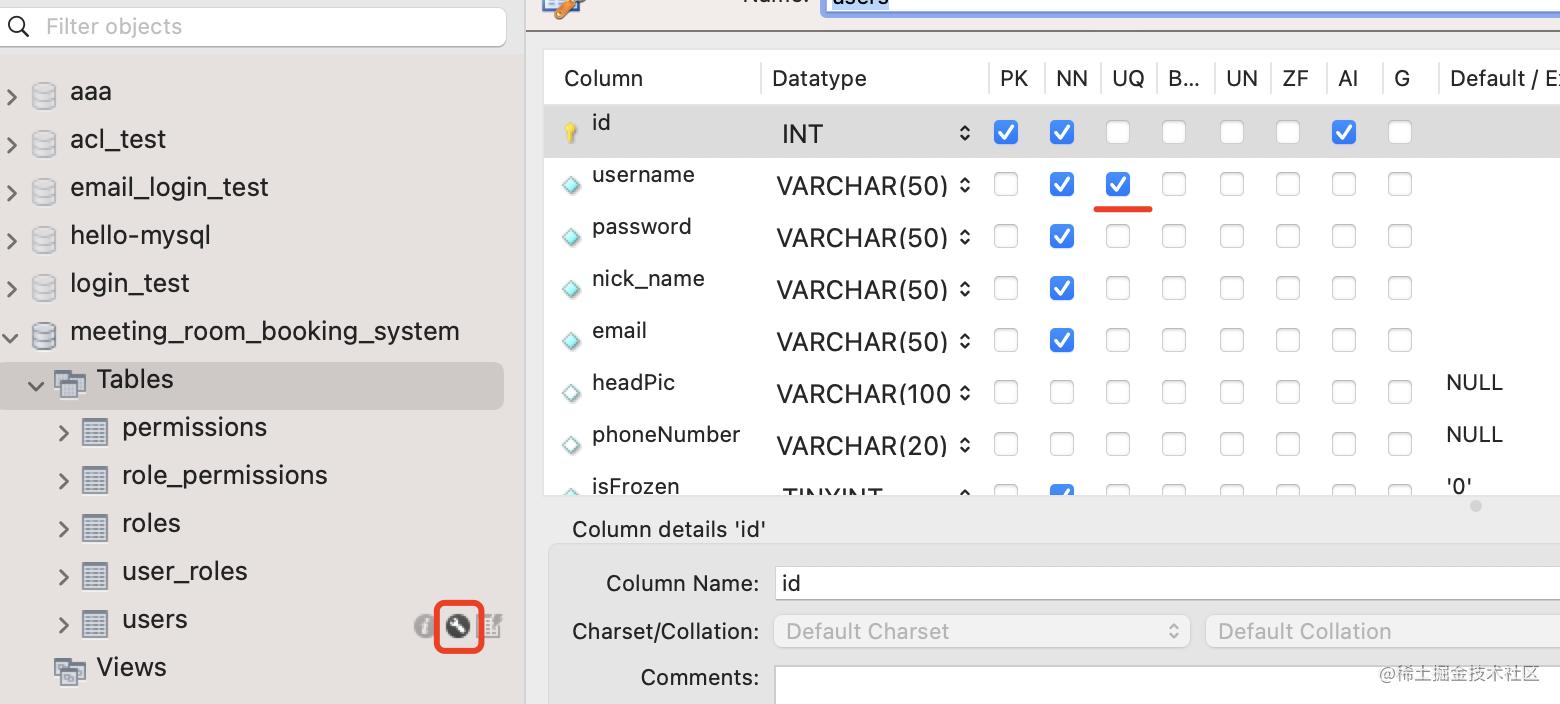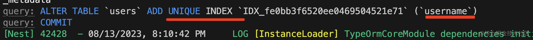 然后可以看到 typeorm 确实给 username 添加了唯一索引:
