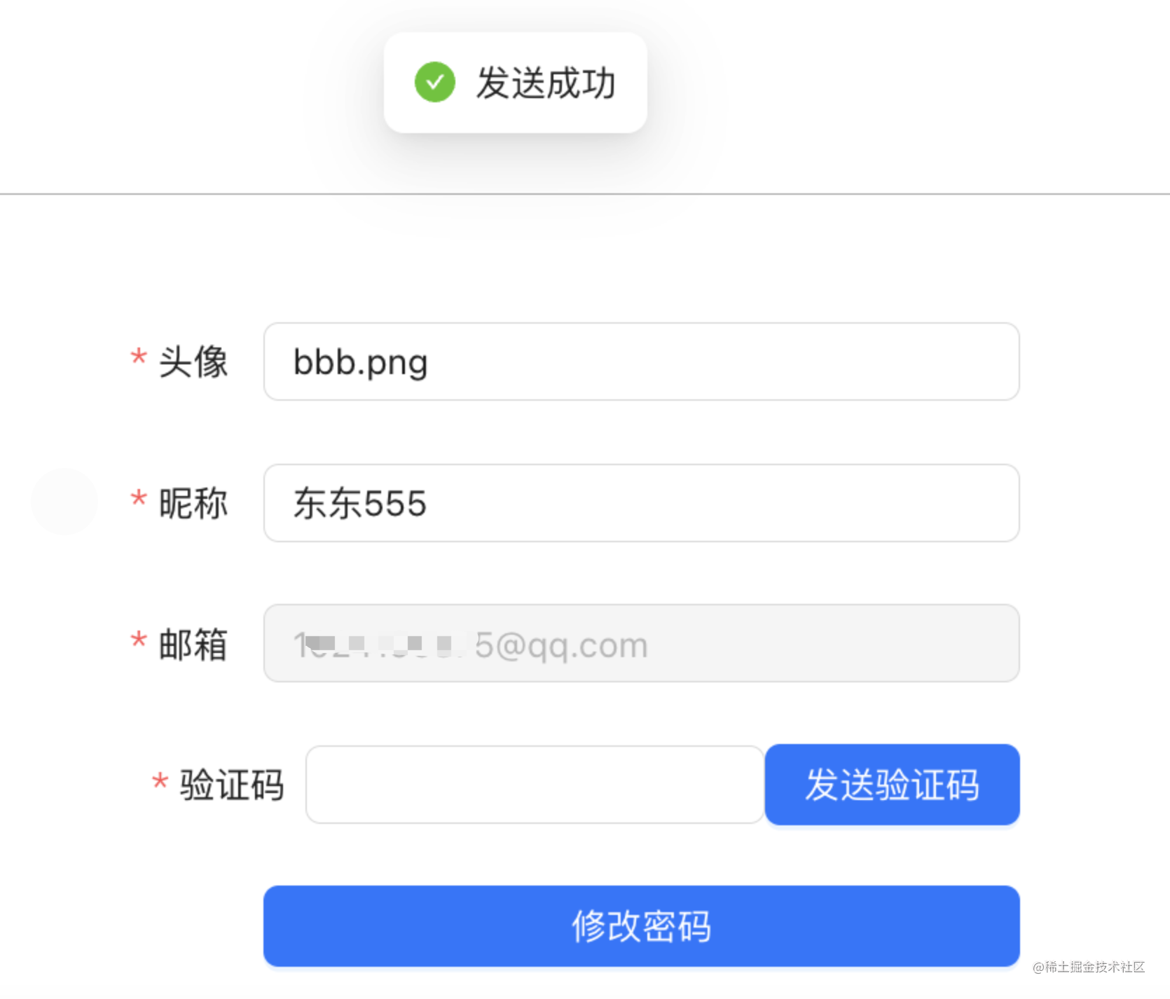 修改信息,点击发送验证码: