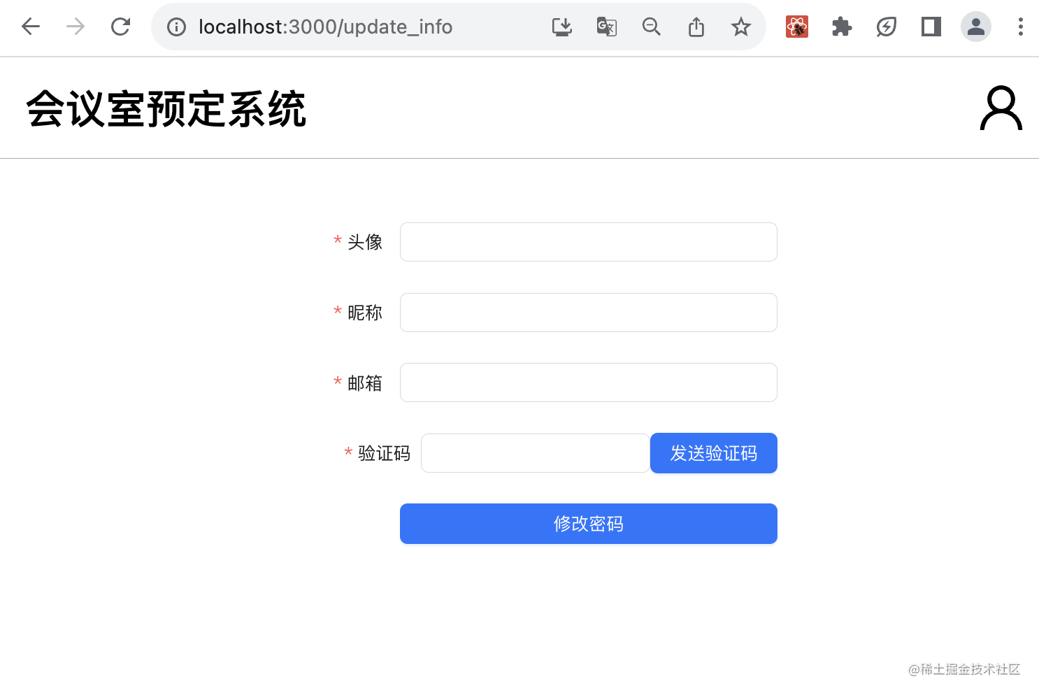 修改个人信息页面是登录后的,我们通过 React Router 的路由嵌套写了多级页面。