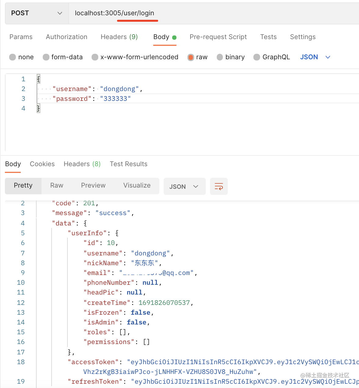 然后可以看到控制台打印了当前登录用户的信息: