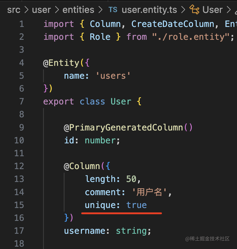 此外,我们在 User 的 entity 这里给 username 添加唯一约束: