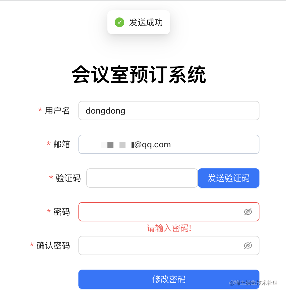 然后实现发送验证码: