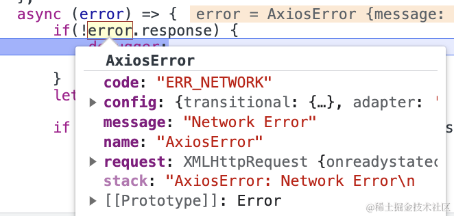 请求没有发送成功时,错误对象没有 response 属性。
