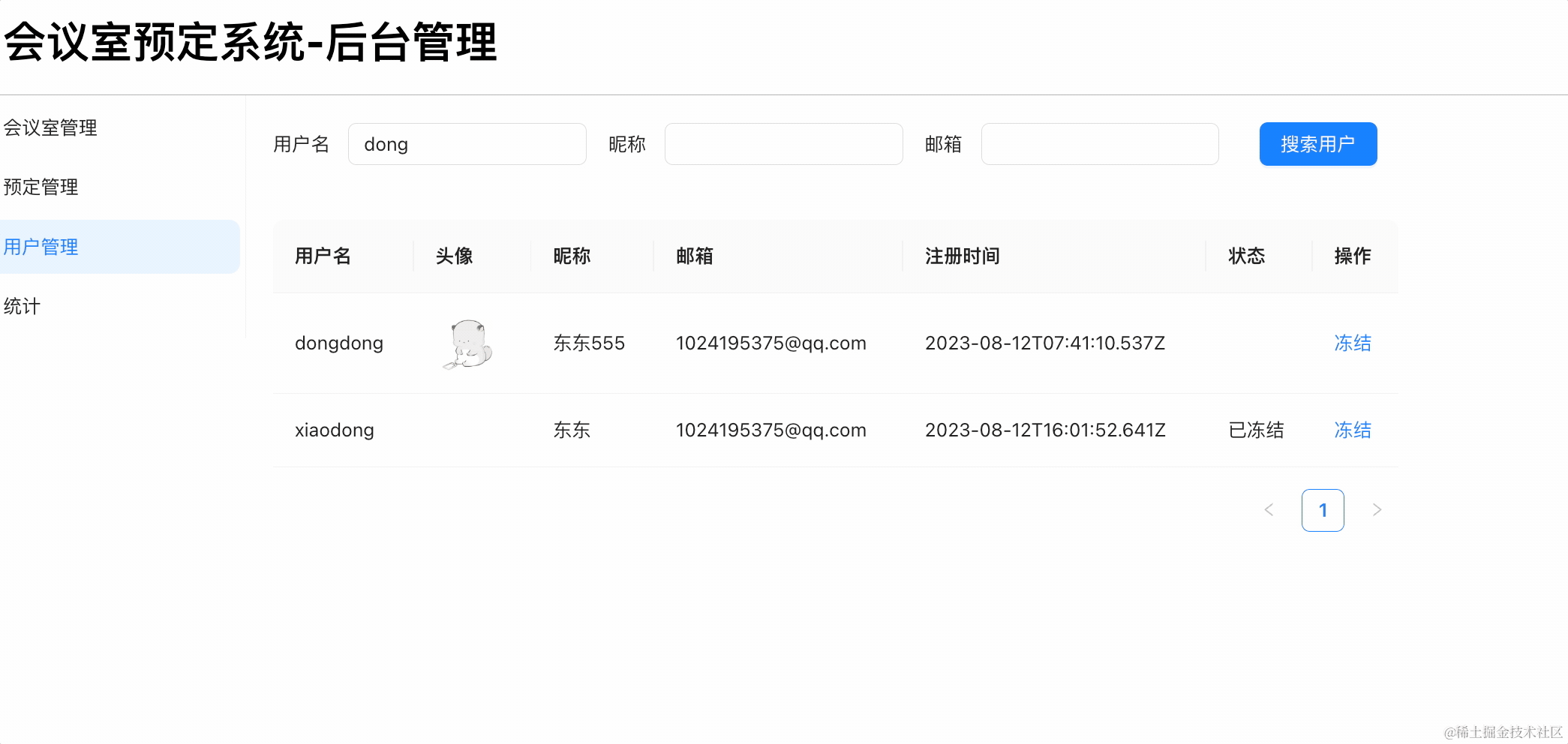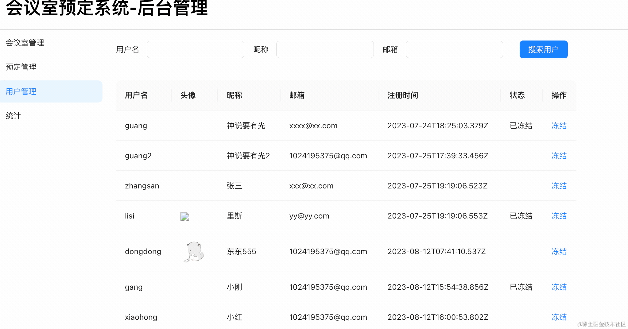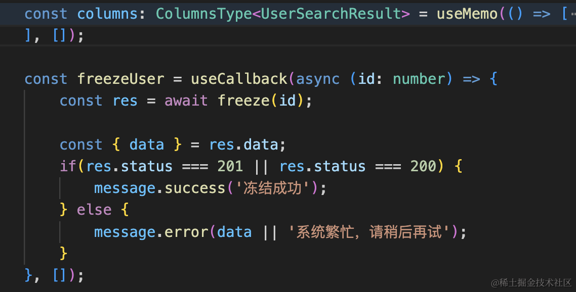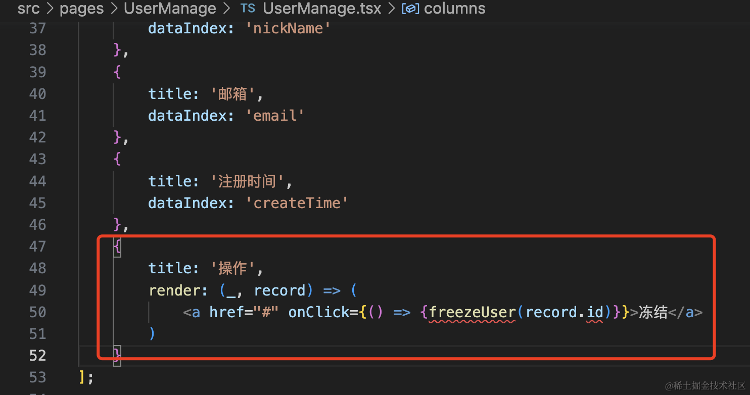 }在组件里创建 freezeUser 方法: