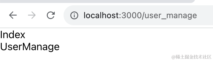 访问 /user_manage 的时候,渲染 / 和 user_manage 的二级路由,也就是 Index + UserManage 组件。