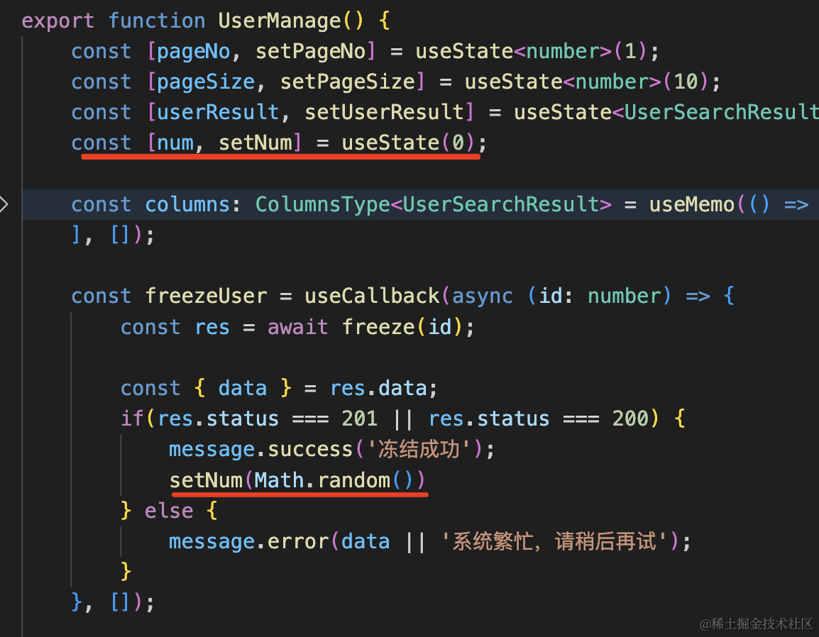 }, []);添加一个 num 的 state,冻结之后设置一个随机值: