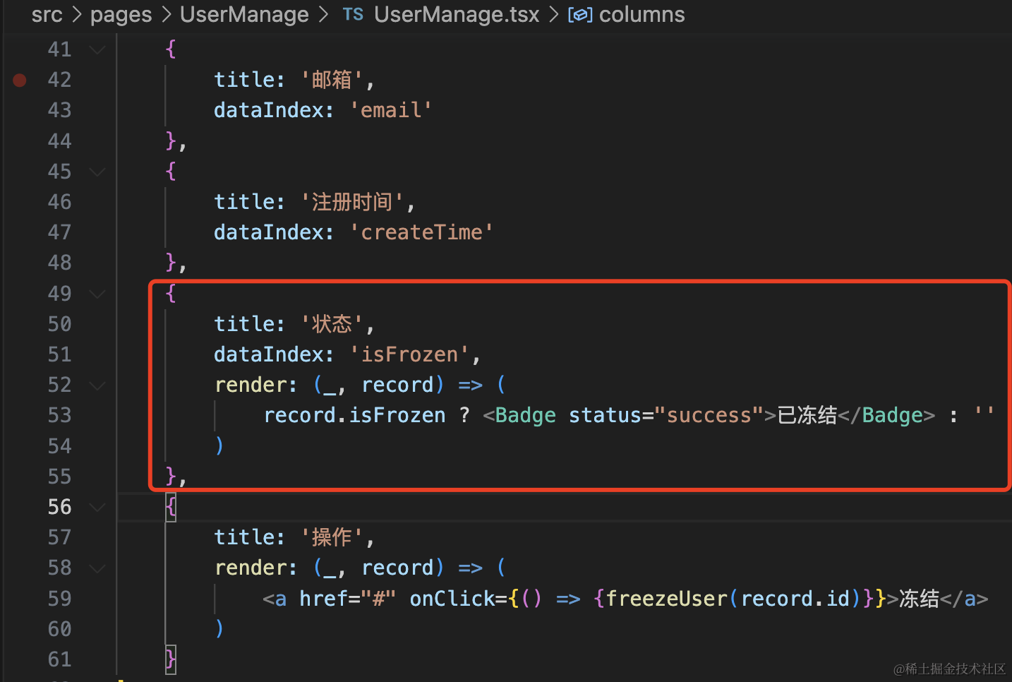 record.isFrozen ? <Badge status="success">已冻结</Badge> : ''