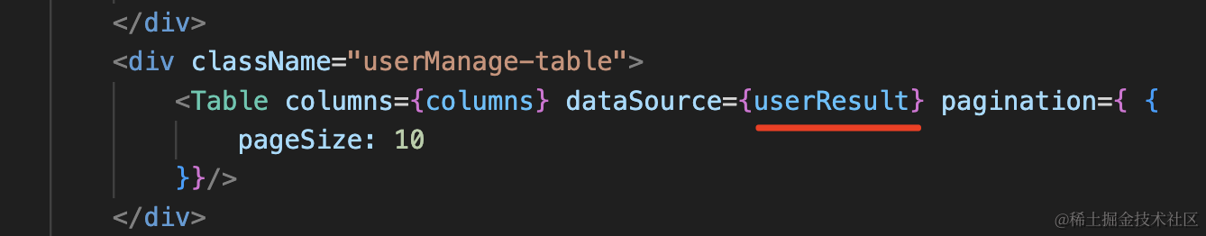 <Table columns={columns} dataSource={userResult} pagination={ {