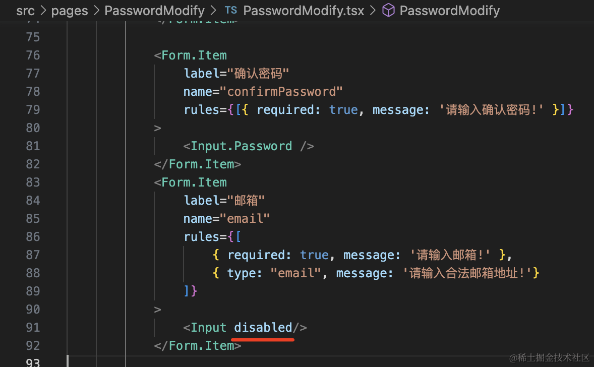 }, []);并把邮箱 Input 设置为 disabled