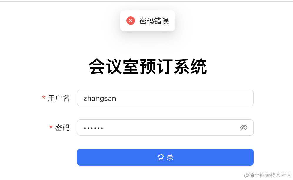 return message.error('两次密码不一致');