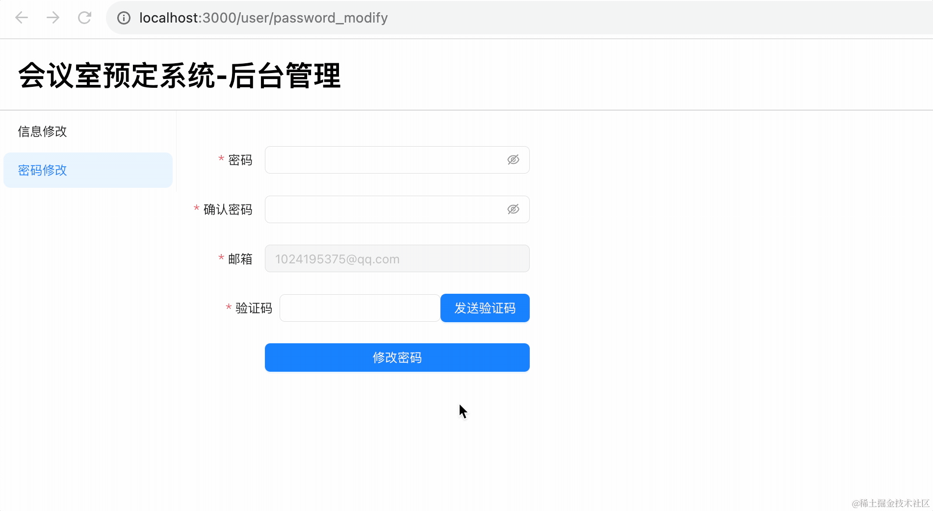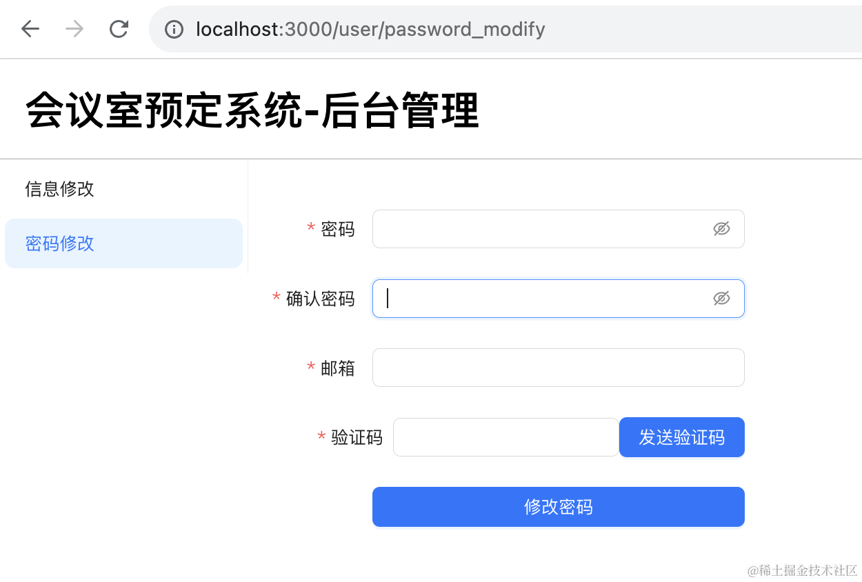 这节我们实现了管理端的用户信息修改和密码修改的页面。