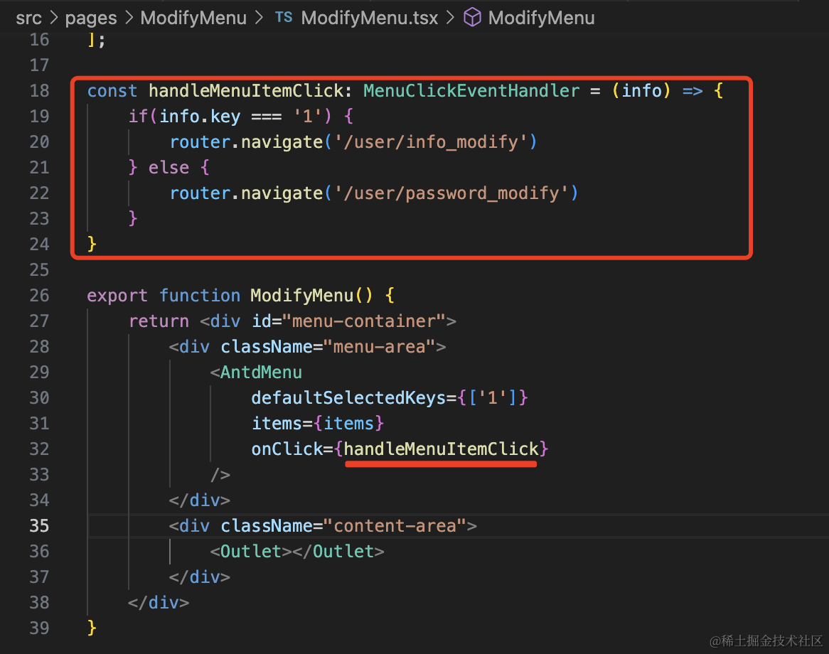 const handleMenuItemClick: MenuClickEventHandler = (info) => {