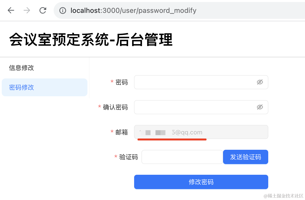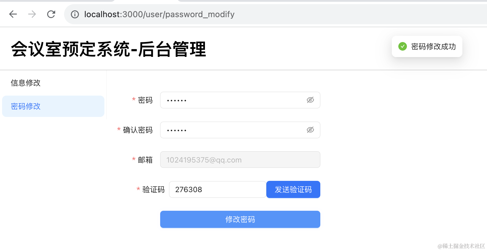 }, []);提示密码修改成功: