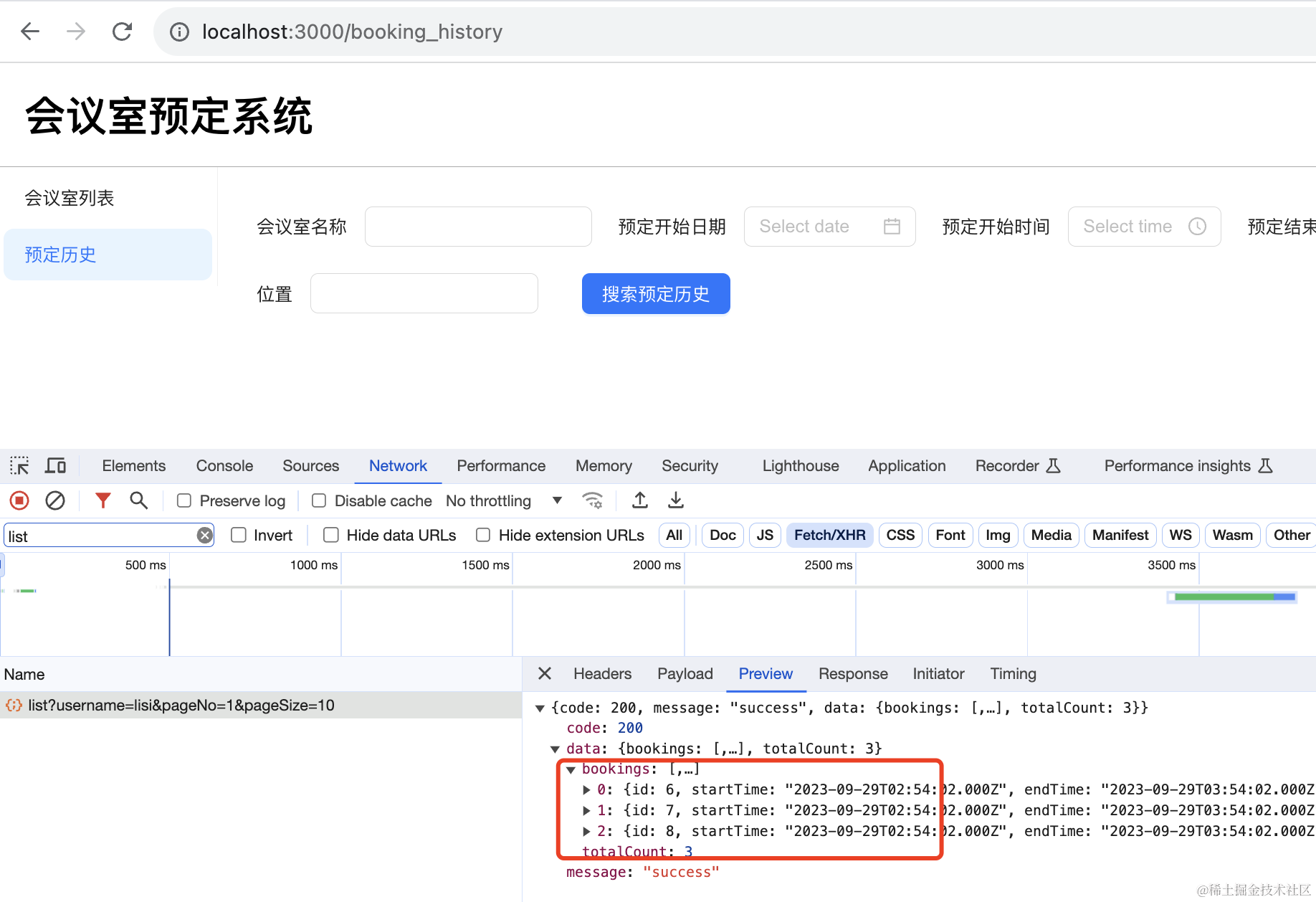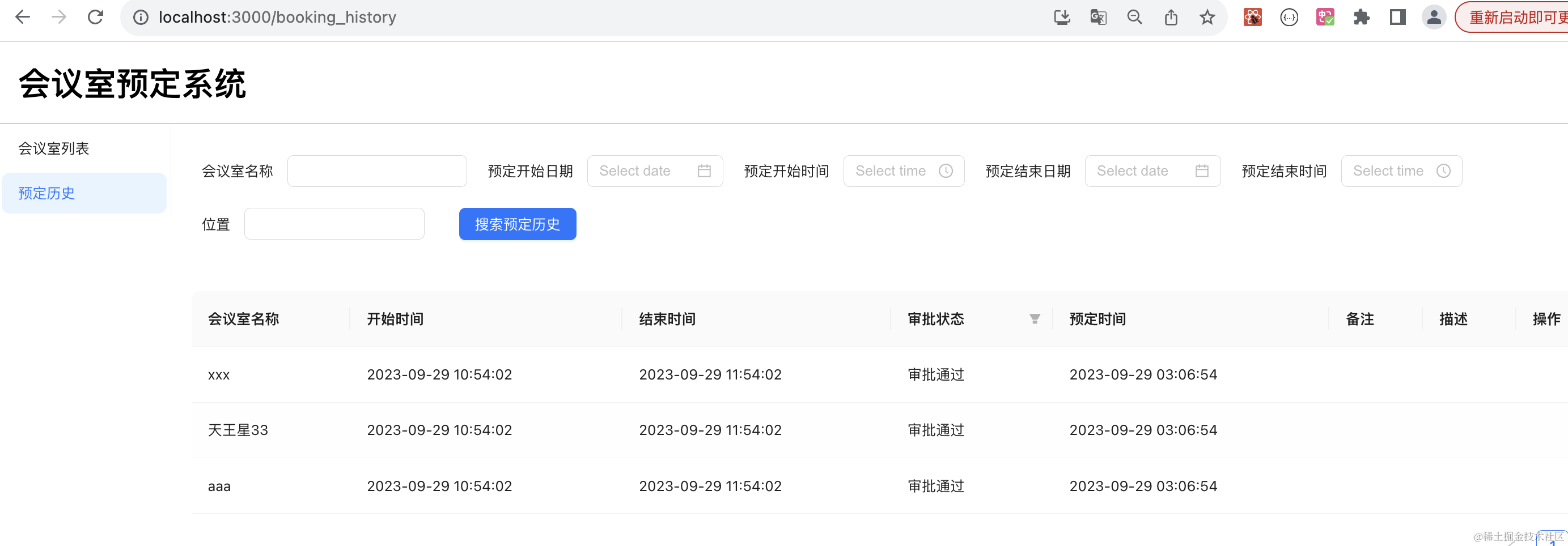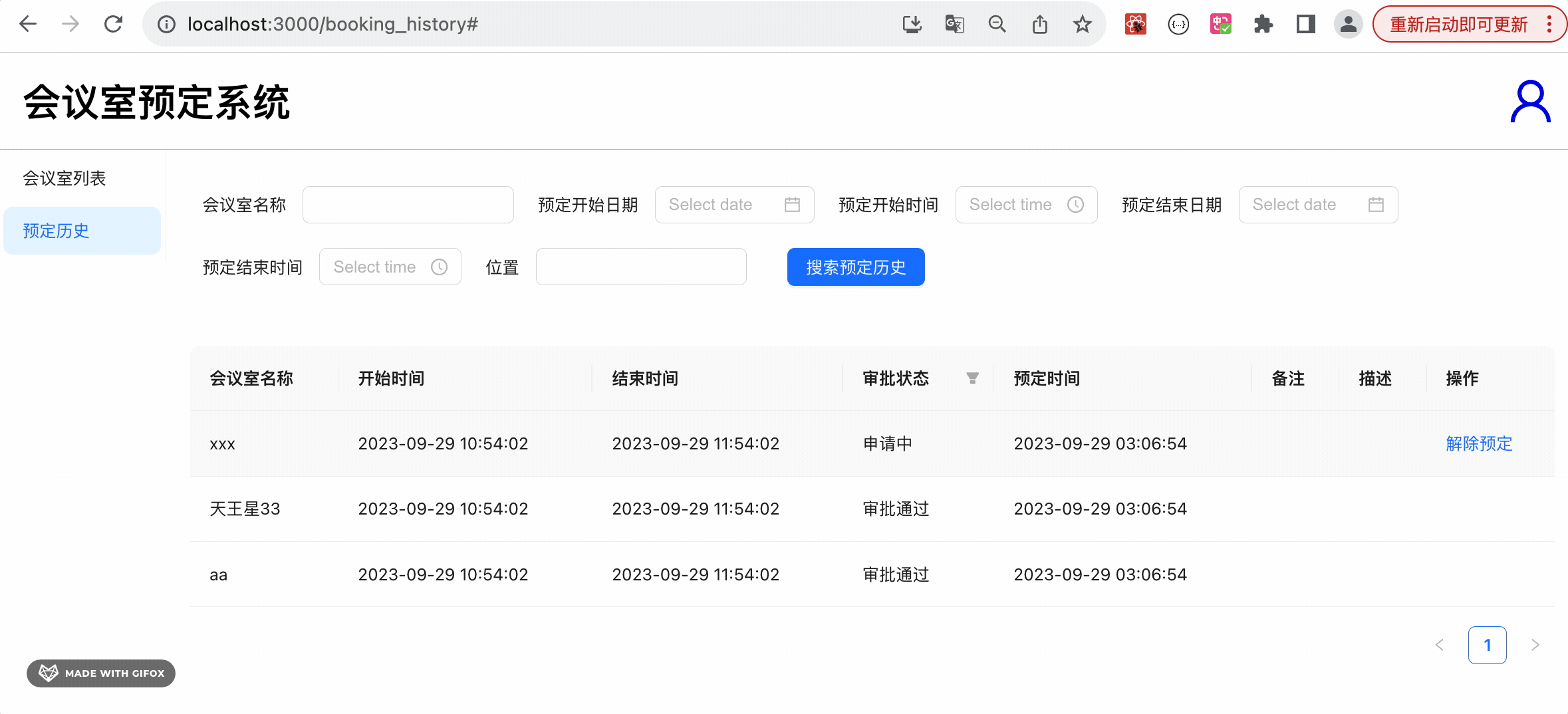 把用户端代码跑起来,首先写下预订历史页面: