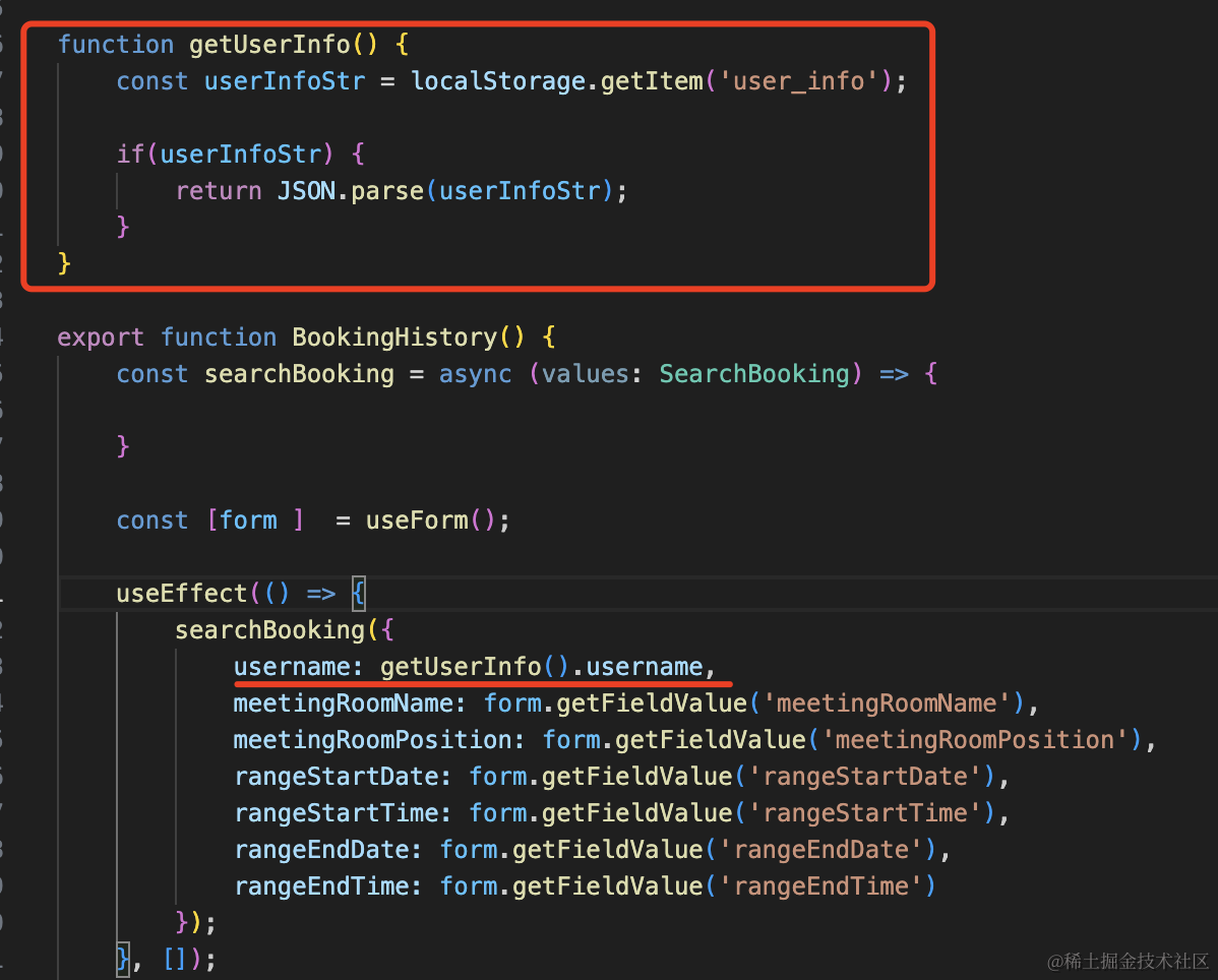 我们登录的时候把它放到了 localStorage 里,所以这里从 localStorage 取就行: