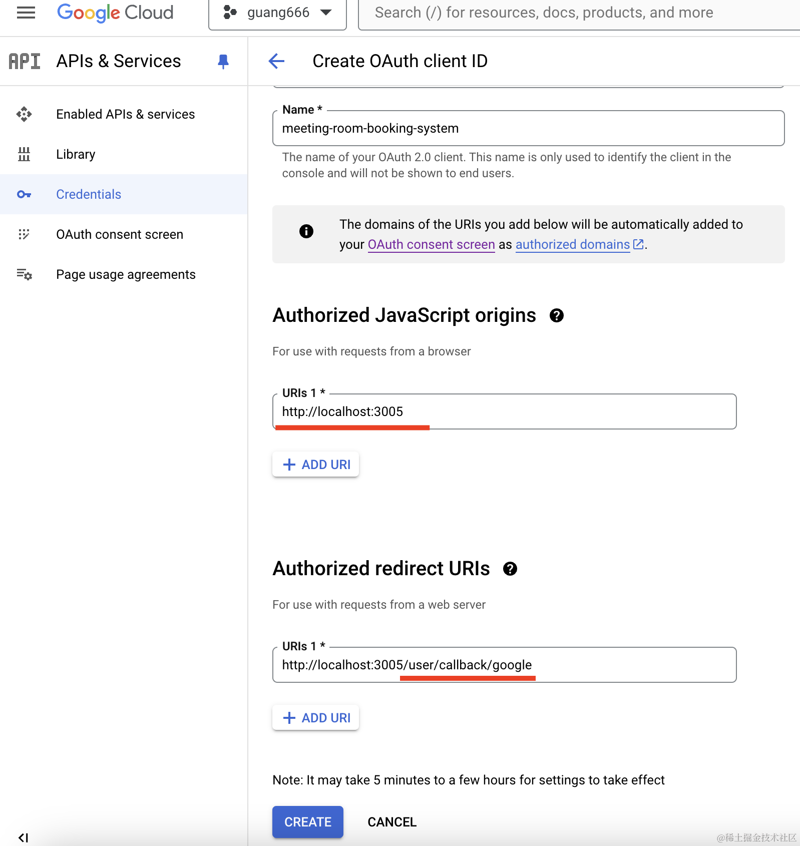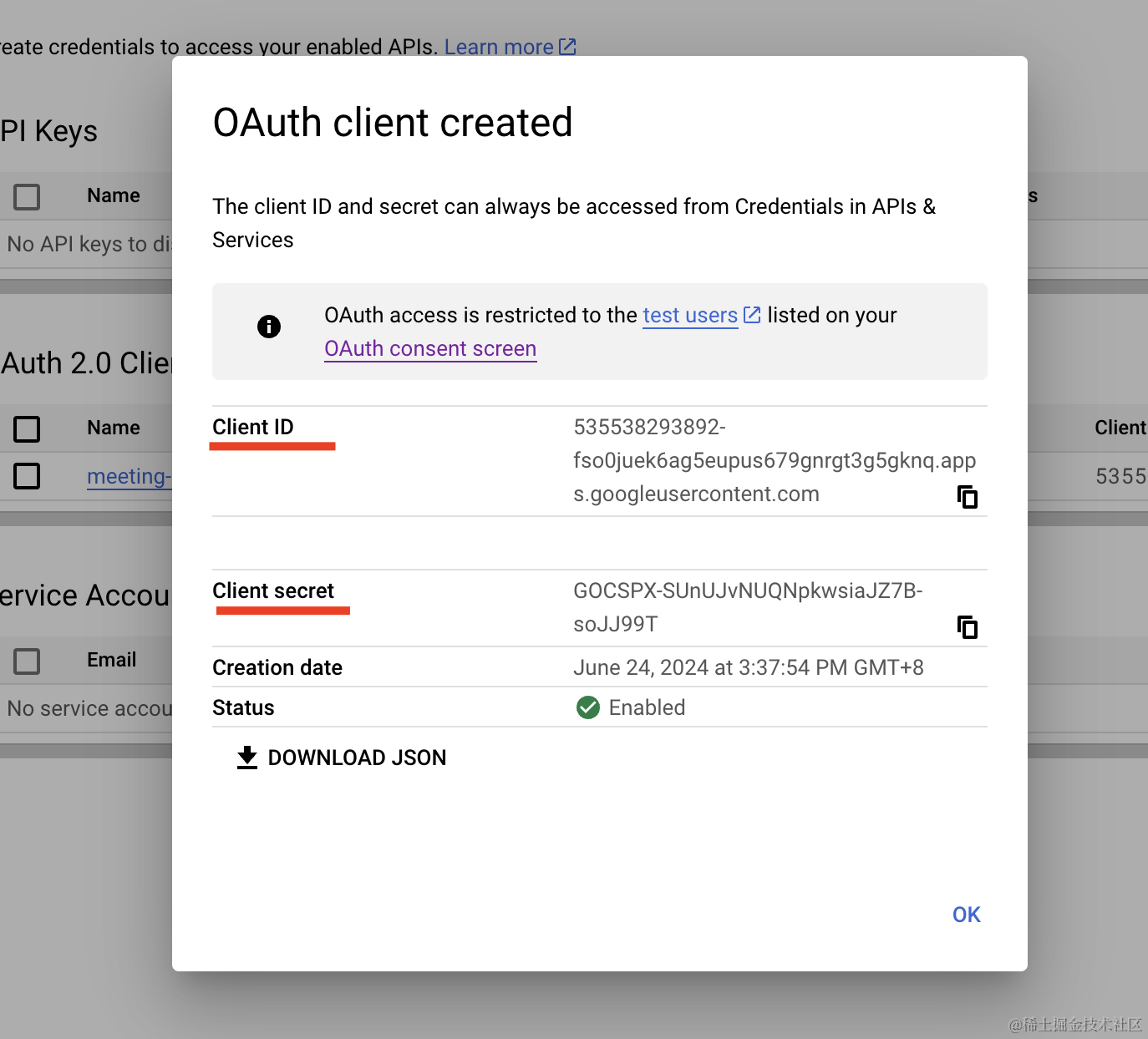 然后我们创建了新的 google 应用,拿到 client id 和 client secret。