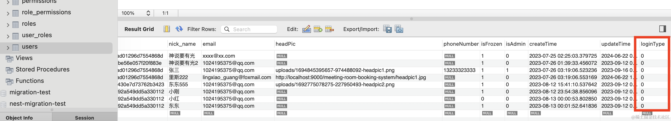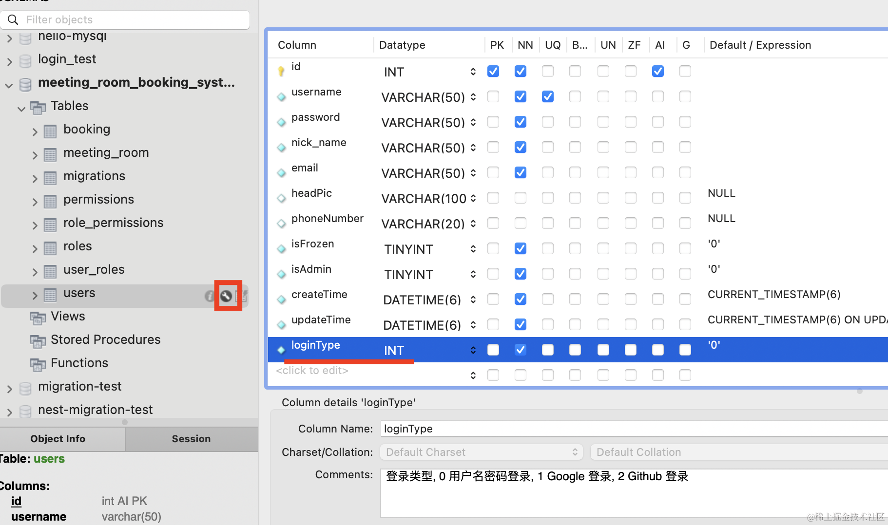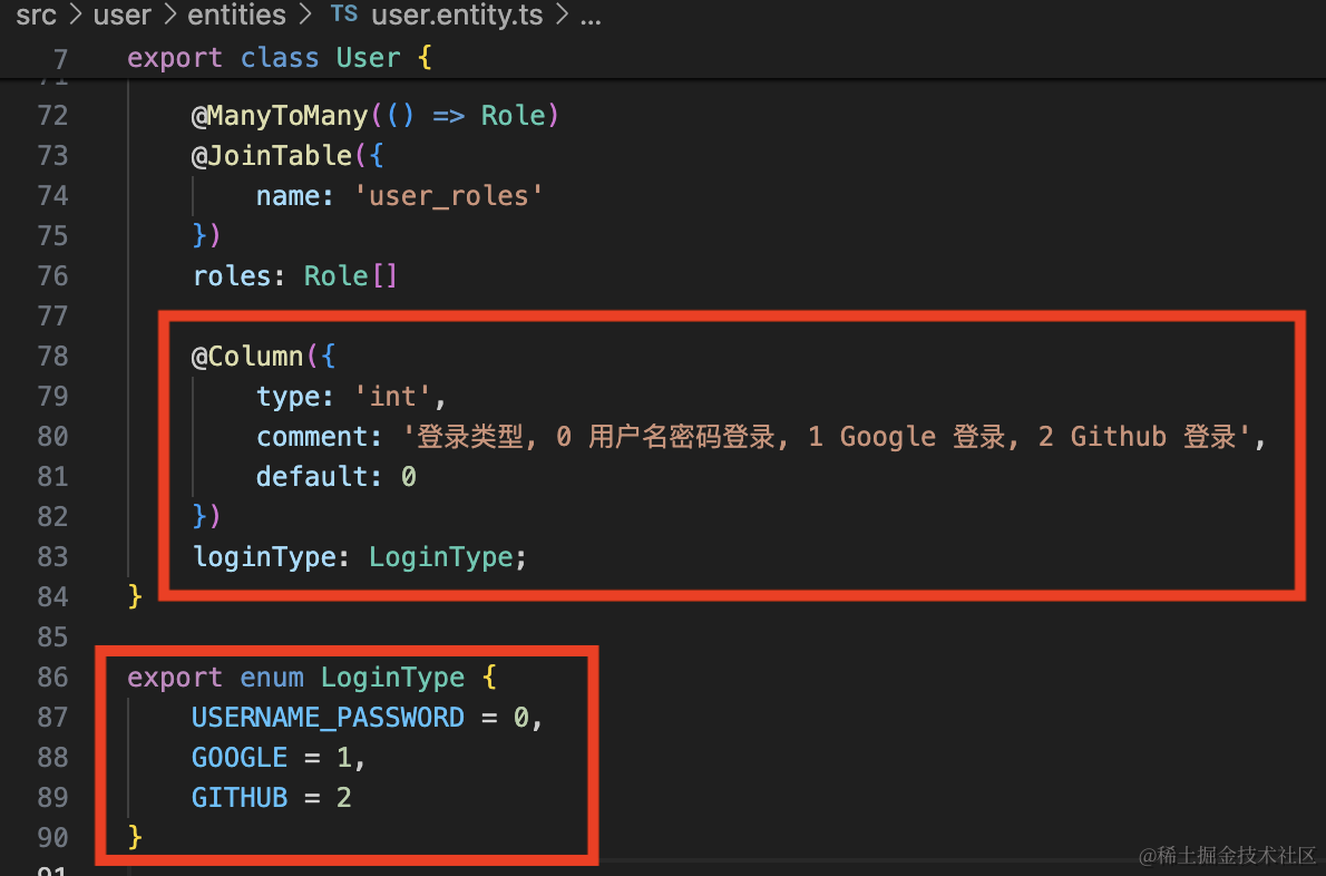 在 user.entity.ts 添加 loginType 字段: