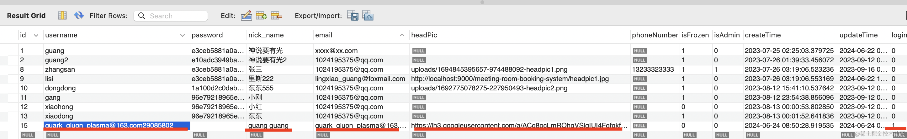 username 我们就用 email + 随机数的方式生成,反正也不需要用用户名密码登录,保证唯一就行。